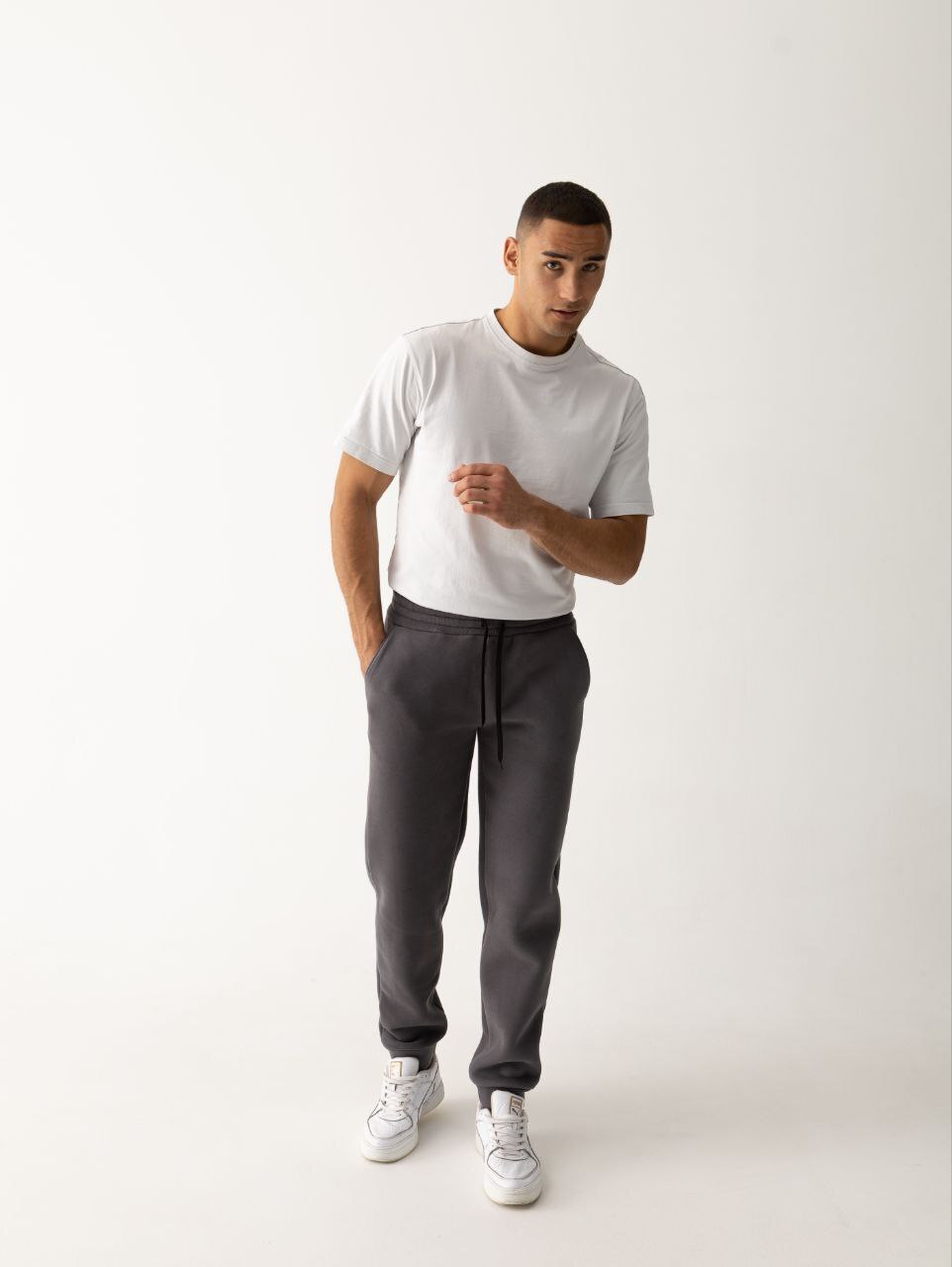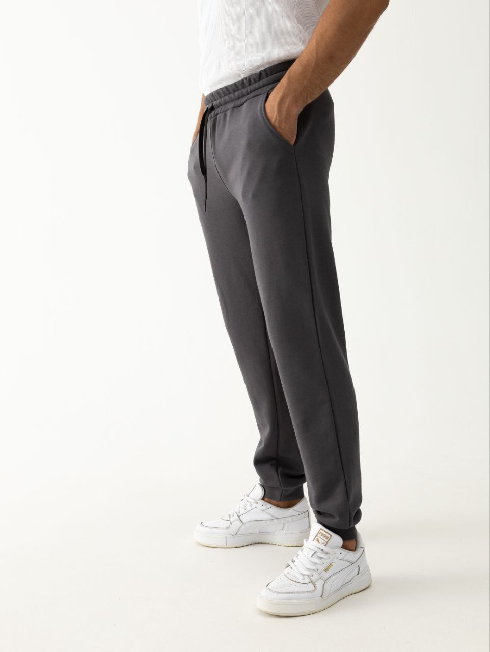 Дизайн выполнен в сдержанной классической манере, что позволяет сочетать их с различными элементами гардероба. Удобные манжеты на резинке и регулируемый пояс обеспечивают идеальную посадку. Эти спортивные брюки — воплощение практичности и современного стиля, которые подчеркнут ваш образ в любой ситуации.