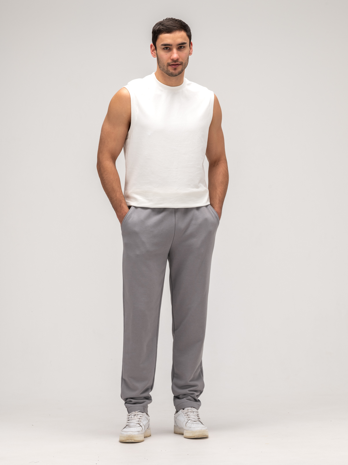 Прямой крой без манжеты делает брюки универсальными: их можно носить как в спортзале, так и в повседневной жизни. Элегантный и современный дизайн подчеркивает спортивный стиль, а декатирование ткани придаёт изделию дополнительную прочность и стойкость к износу.