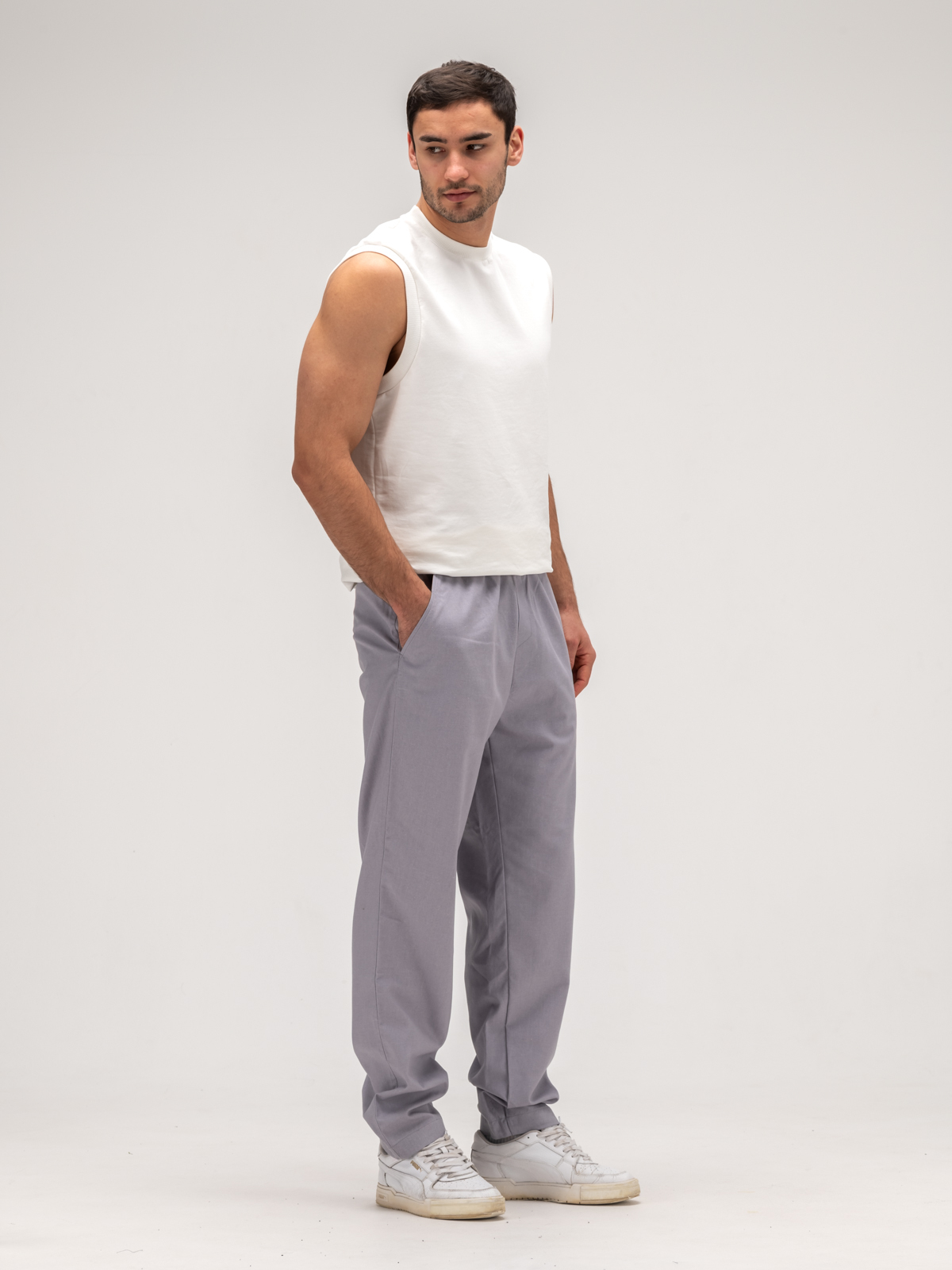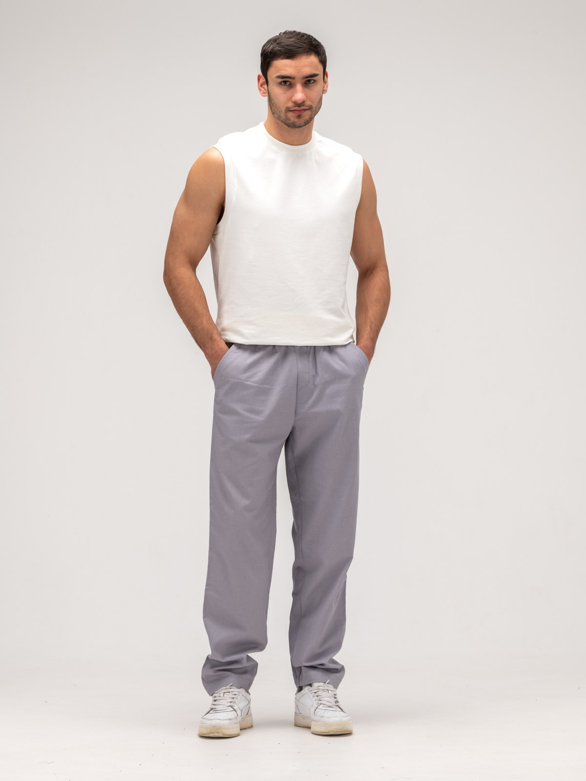 Джоггеры льняные. Грей