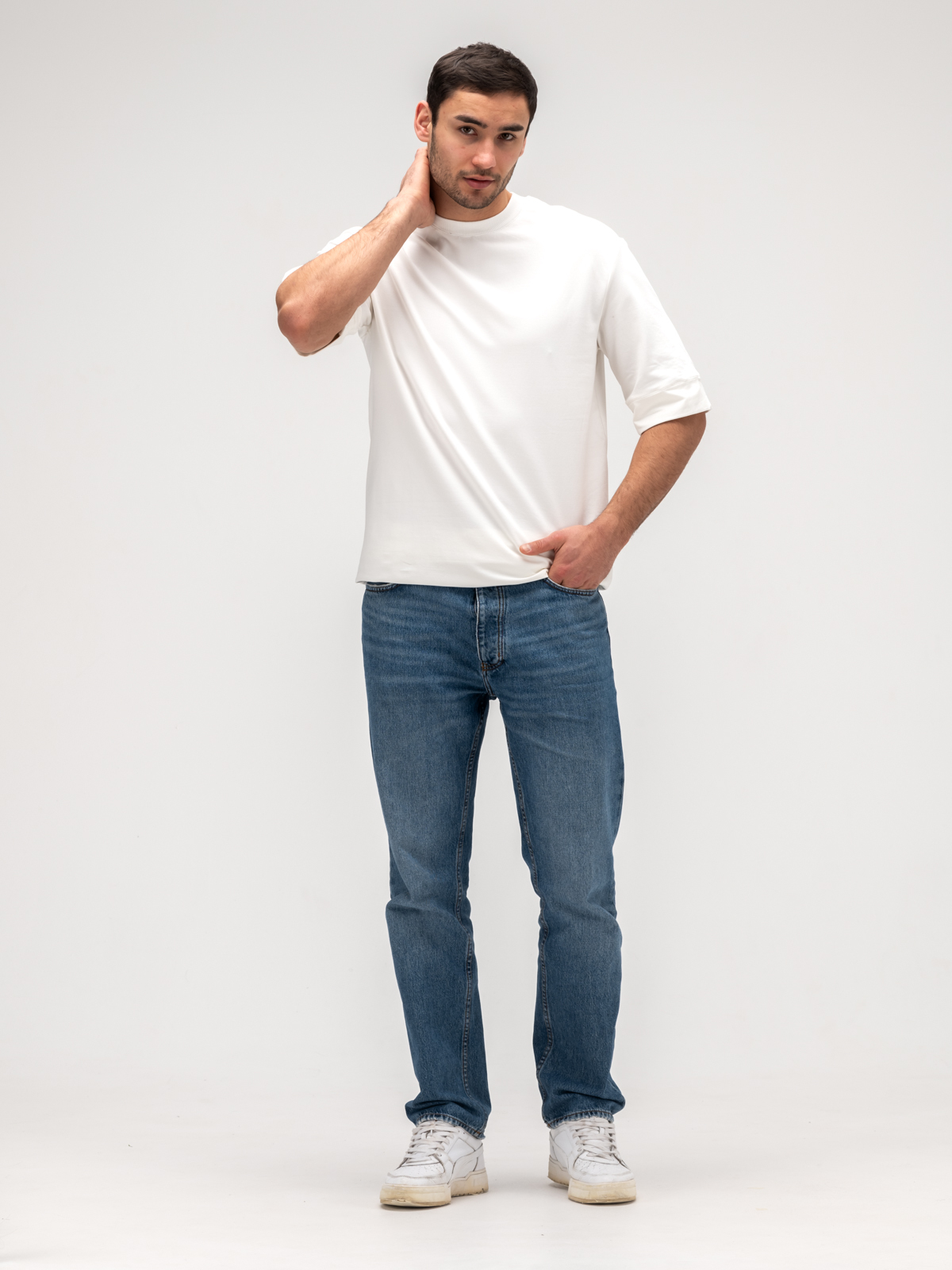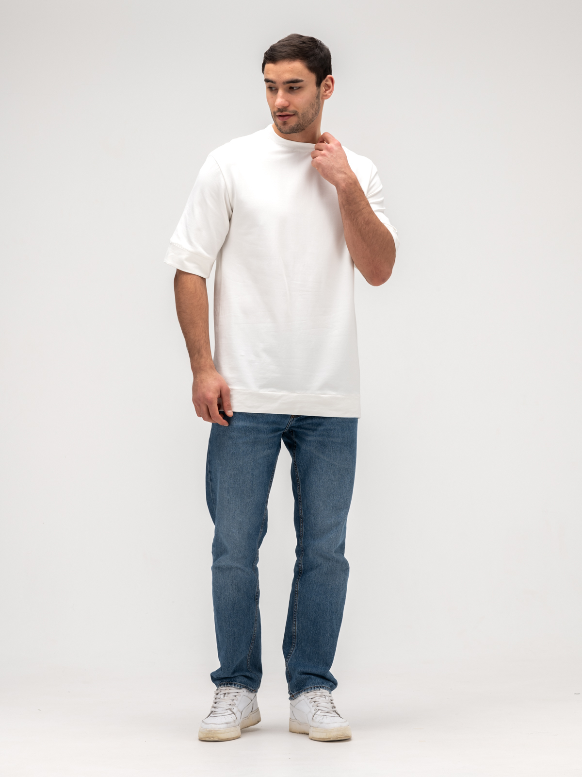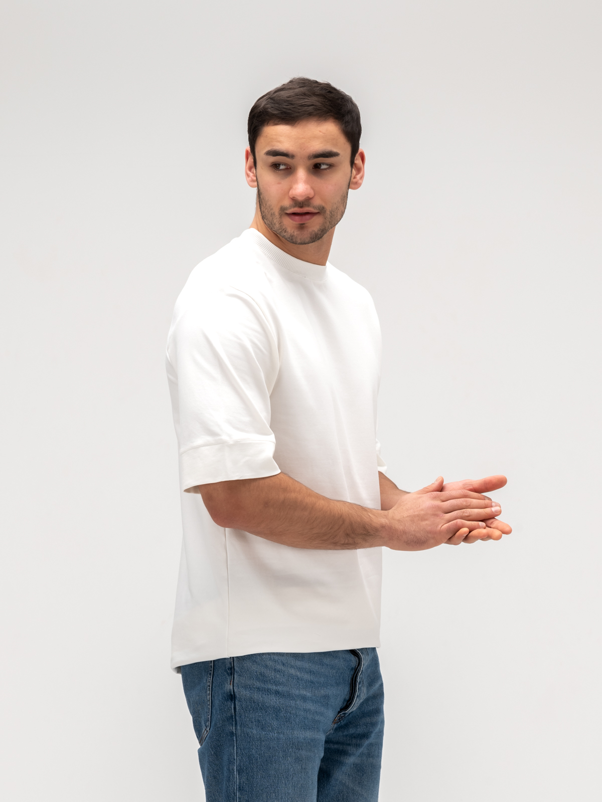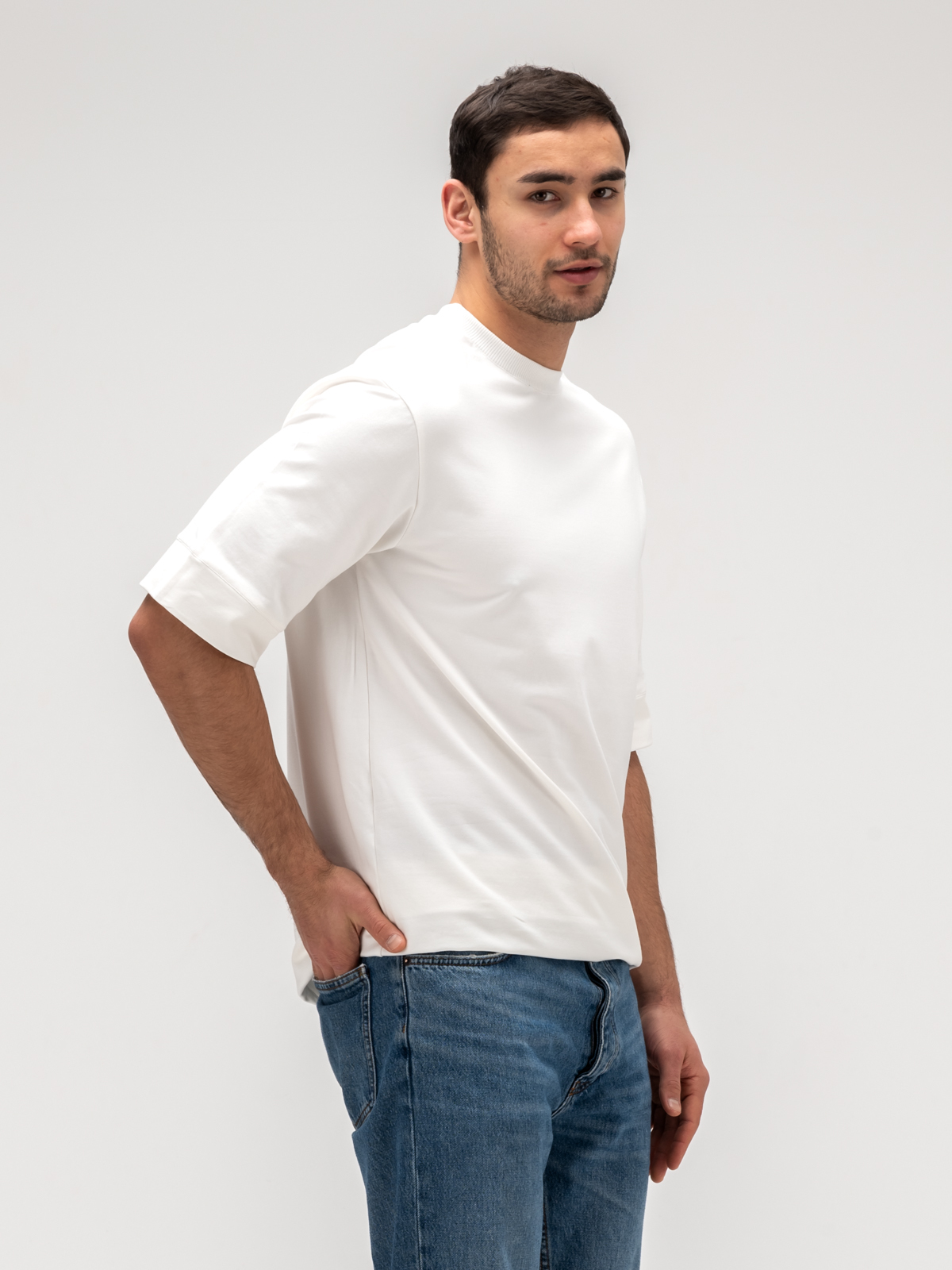 Мужская футболка свободного кроя сшита из плотного хлопка премиального качества от турецкого производителя. Декатирование ткани перед раскроем обеспечивает долговечность и износостойкость, сохраняя форму и цвет даже после множества стирок. Мягкая текстура материала приятна к телу, обеспечивая комфорт в любую погоду. Свободный крой подчеркивает стиль и универсальность, делая футболку идеальной как для повседневной носки, так и для создания модных образов. Аккуратные швы и качественная обработка краев подчеркивают внимание к деталям, а минималистичный дизайн делает ее актуальной в любом сезоне. Эта футболка — воплощение сдержанной элегантности и практичности, которая станет незаменимой в гардеробе современного мужчины.