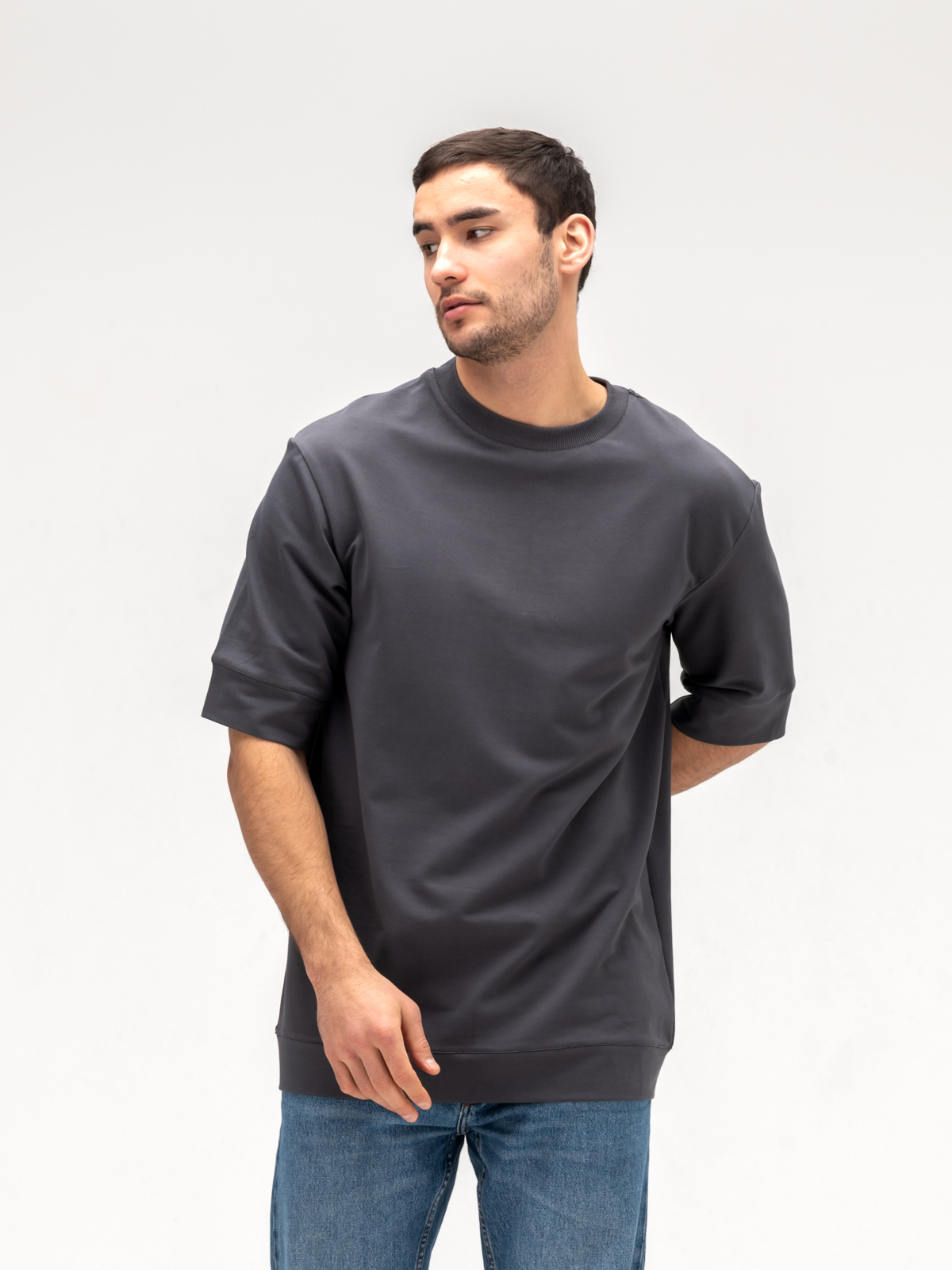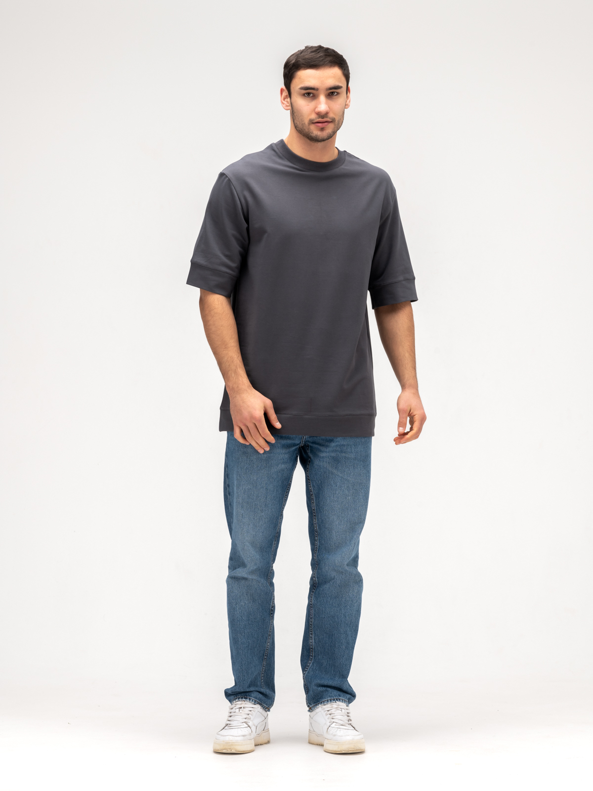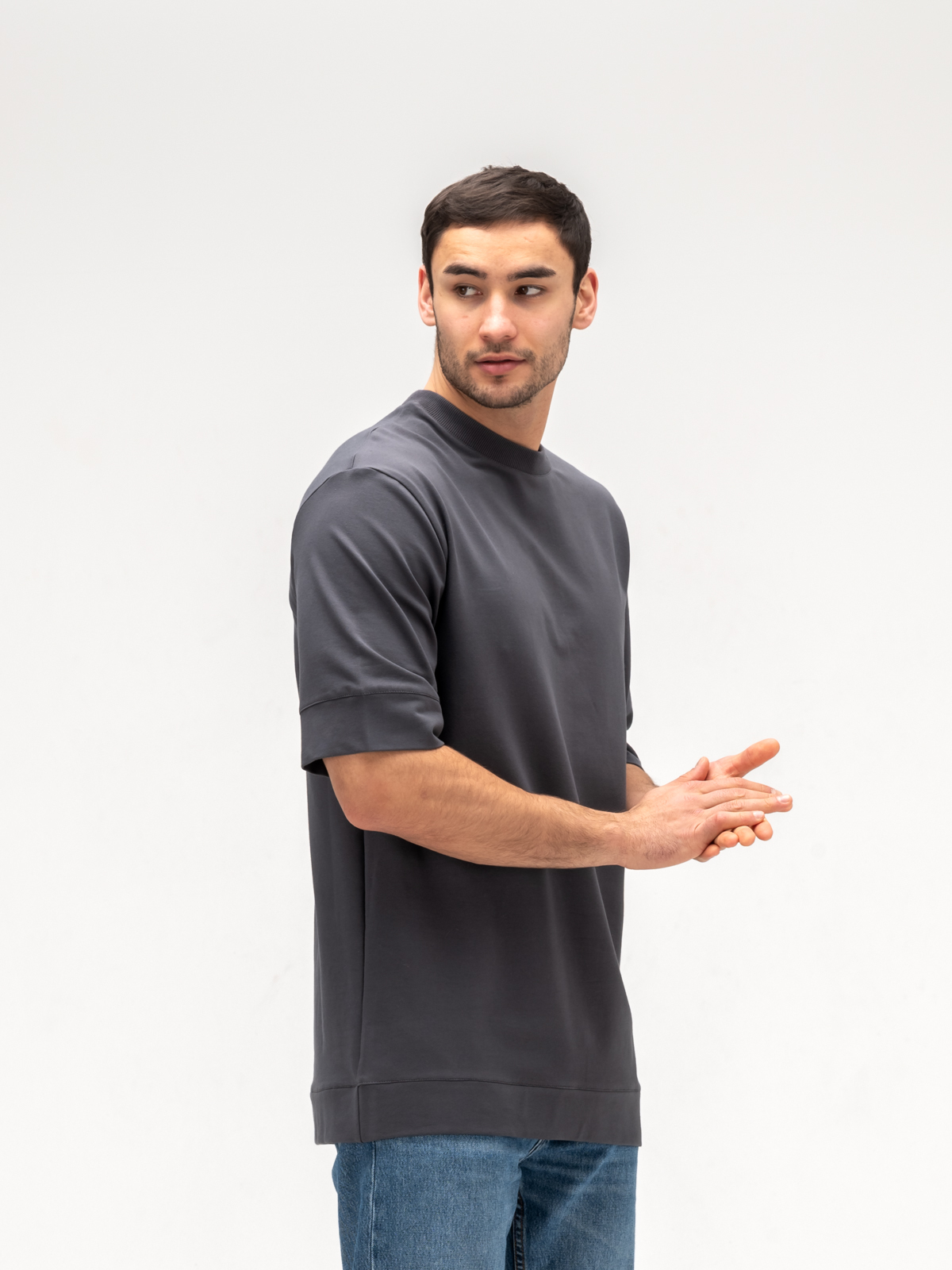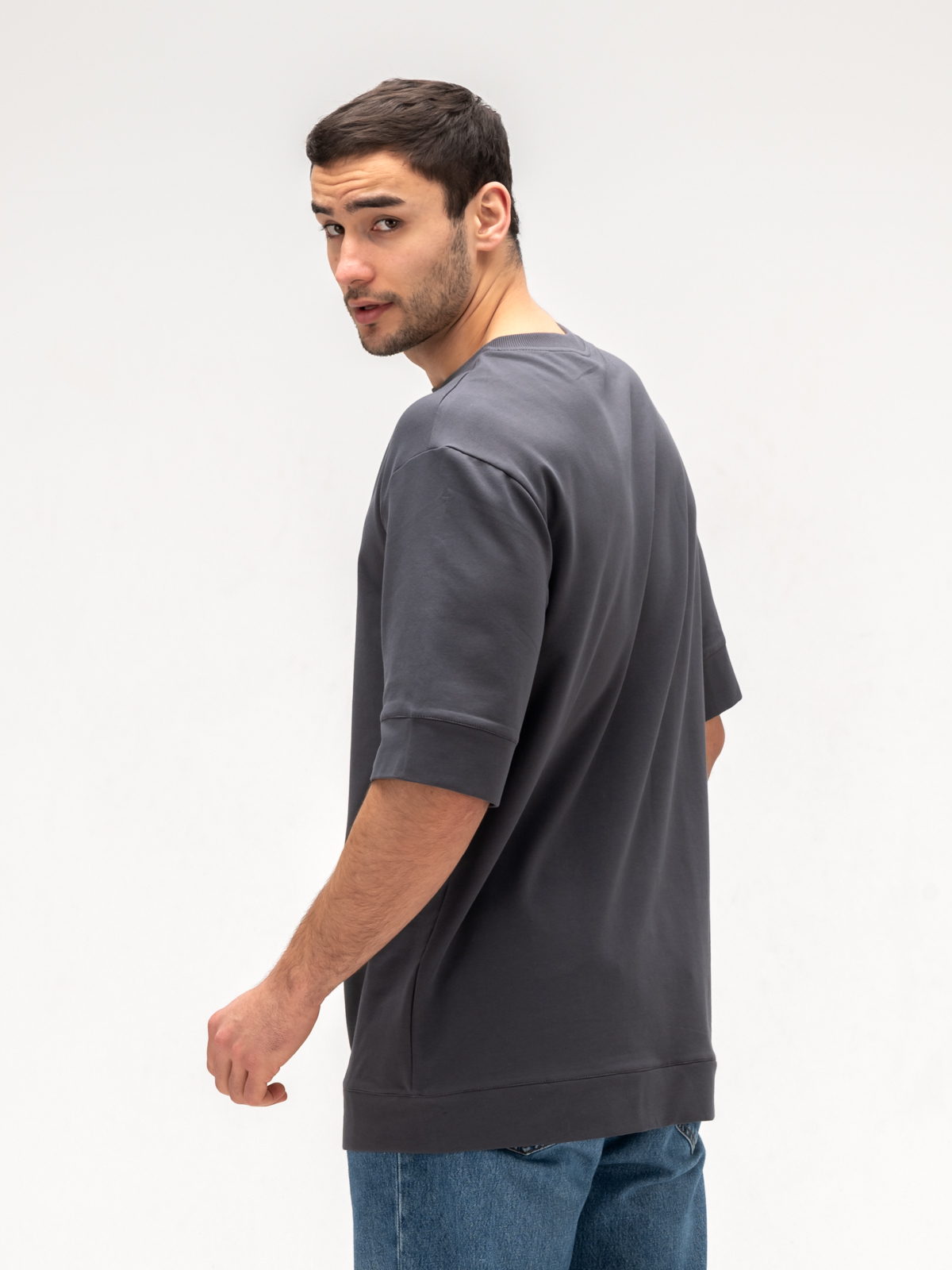 Мужская футболка свободного кроя сшита из плотного хлопка премиального качества от турецкого производителя. Декатирование ткани перед раскроем обеспечивает долговечность и износостойкость, сохраняя форму и цвет даже после множества стирок. Мягкая текстура материала приятна к телу, обеспечивая комфорт в любую погоду. Свободный крой подчеркивает стиль и универсальность, делая футболку идеальной как для повседневной носки, так и для создания модных образов. Аккуратные швы и качественная обработка краев подчеркивают внимание к деталям, а минималистичный дизайн делает ее актуальной в любом сезоне. Эта футболка — воплощение сдержанной элегантности и практичности, которая станет незаменимой в гардеробе современного мужчины.