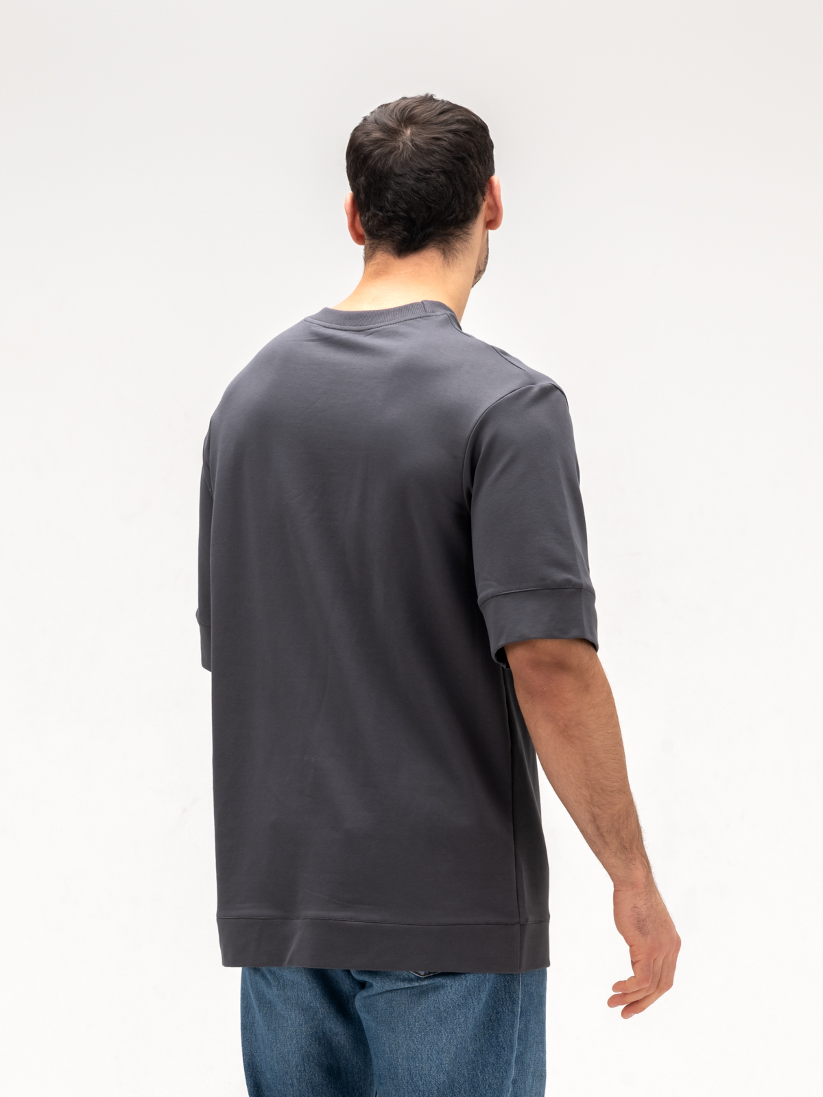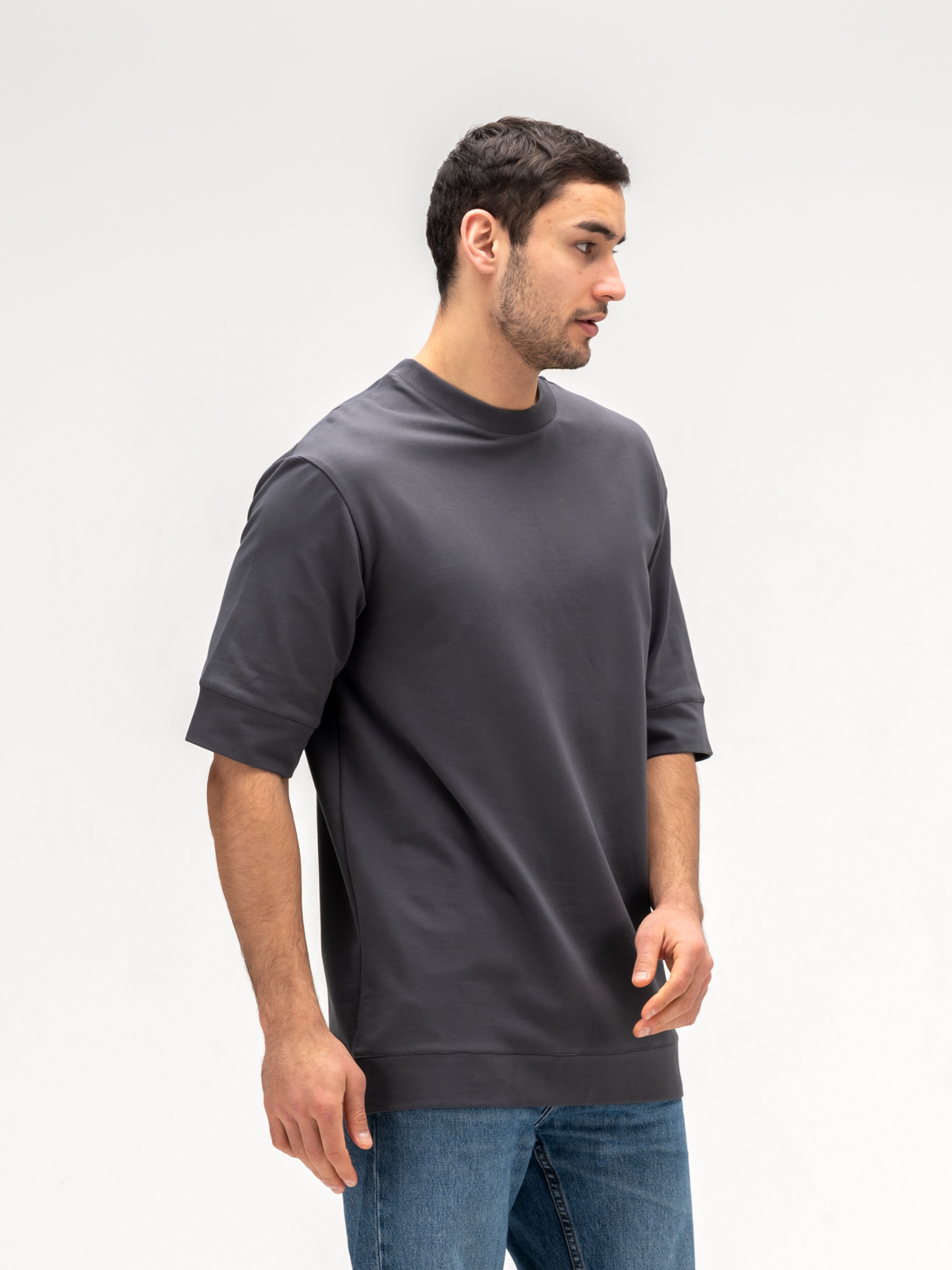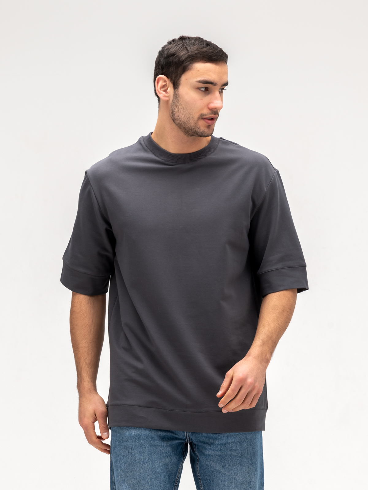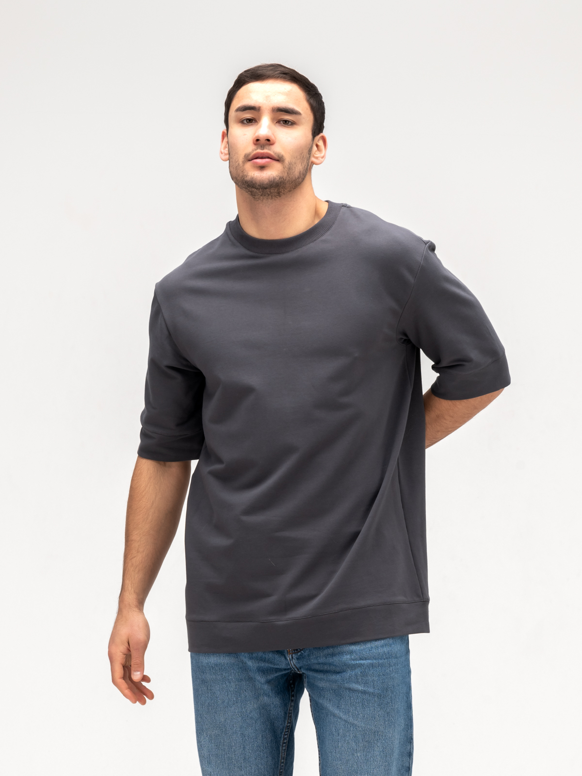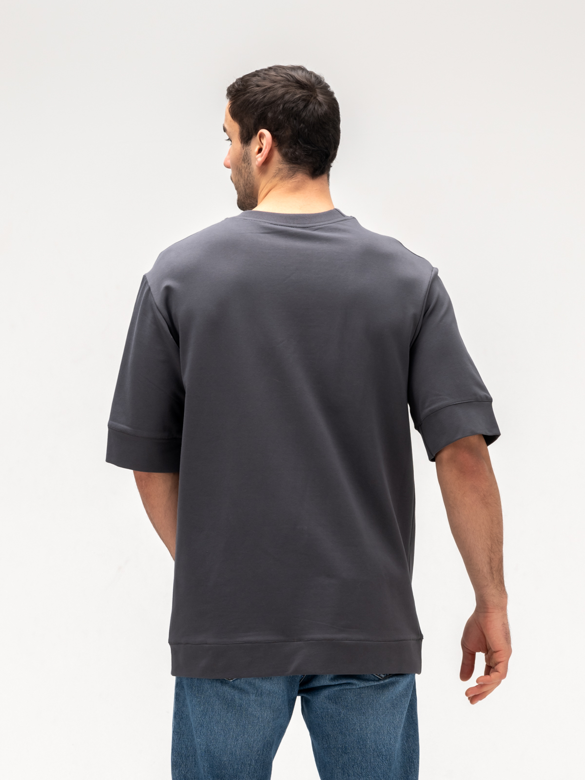 Мужская футболка свободного кроя сшита из плотного хлопка премиального качества от турецкого производителя. Декатирование ткани перед раскроем обеспечивает долговечность и износостойкость, сохраняя форму и цвет даже после множества стирок. Мягкая текстура материала приятна к телу, обеспечивая комфорт в любую погоду. Свободный крой подчеркивает стиль и универсальность, делая футболку идеальной как для повседневной носки, так и для создания модных образов. Аккуратные швы и качественная обработка краев подчеркивают внимание к деталям, а минималистичный дизайн делает ее актуальной в любом сезоне. Эта футболка — воплощение сдержанной элегантности и практичности, которая станет незаменимой в гардеробе современного мужчины.