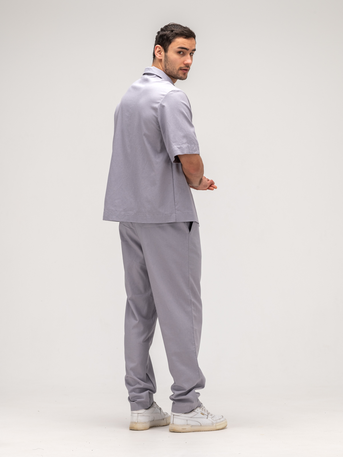 Костюм мужской льняной. Рубашка с брюками.Грей