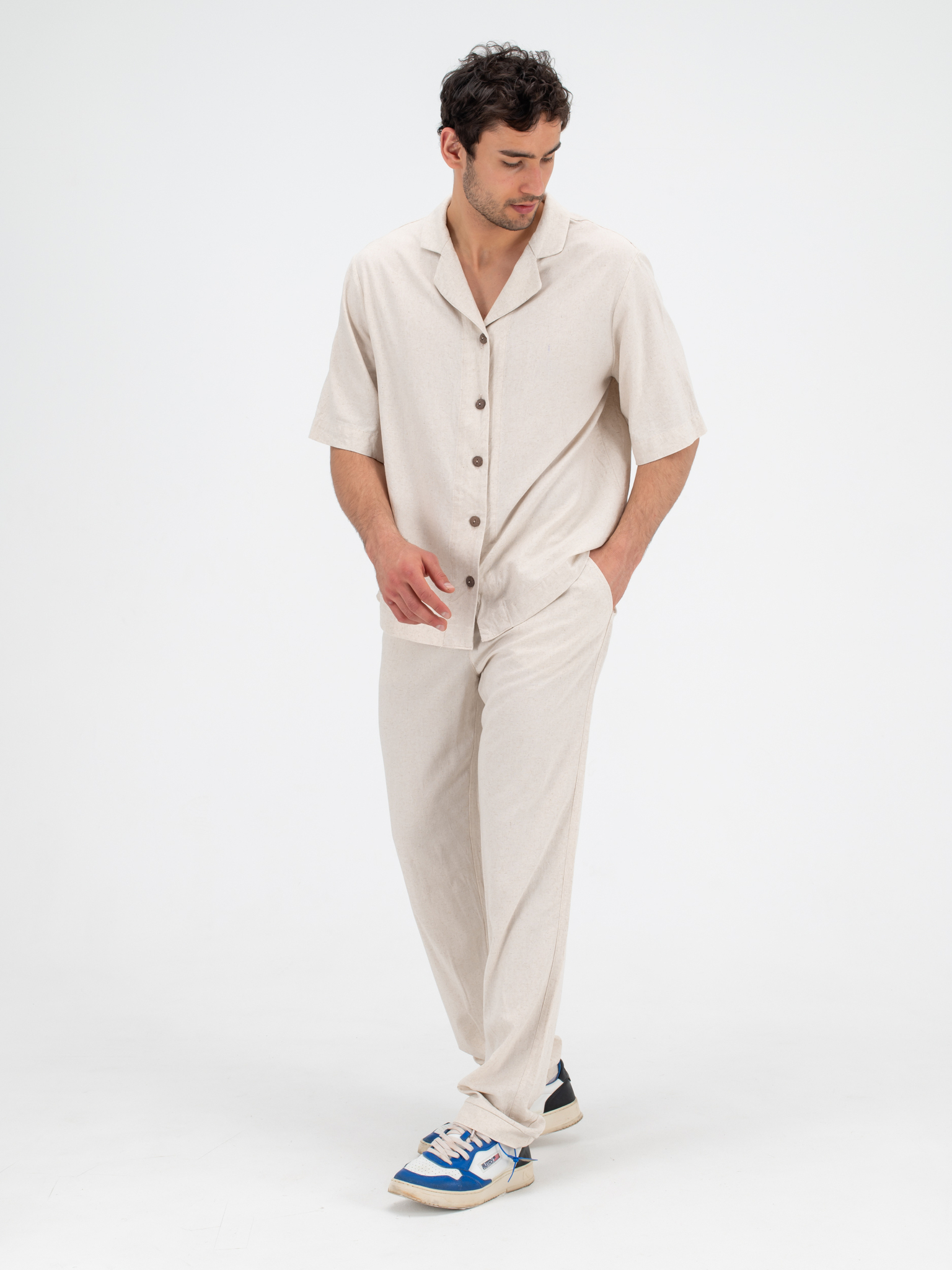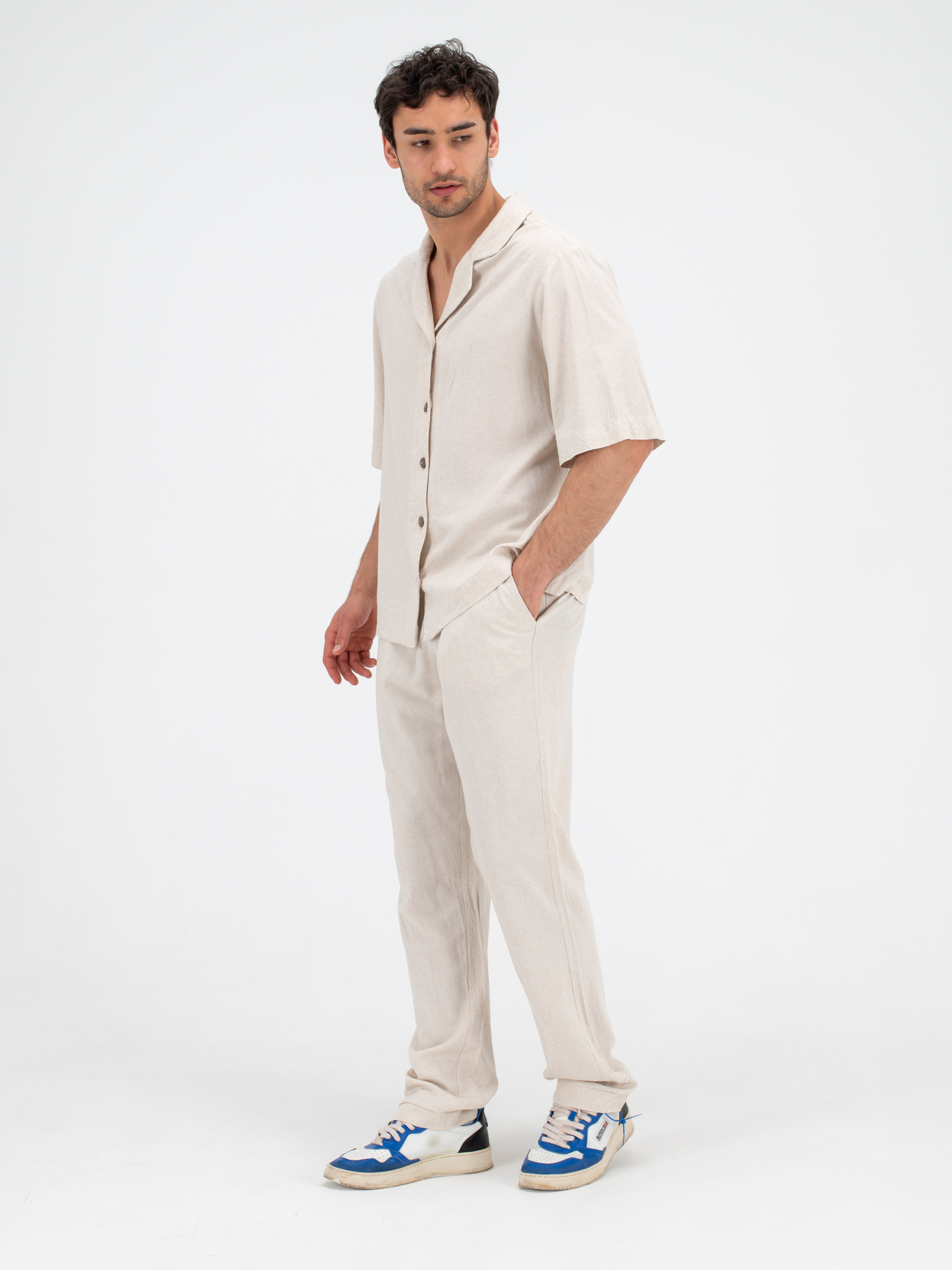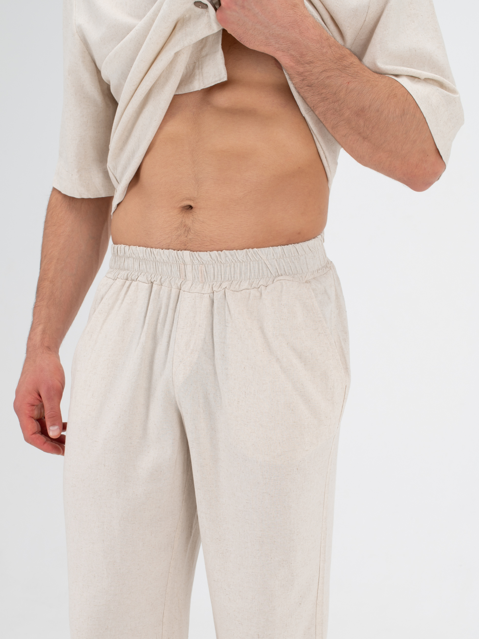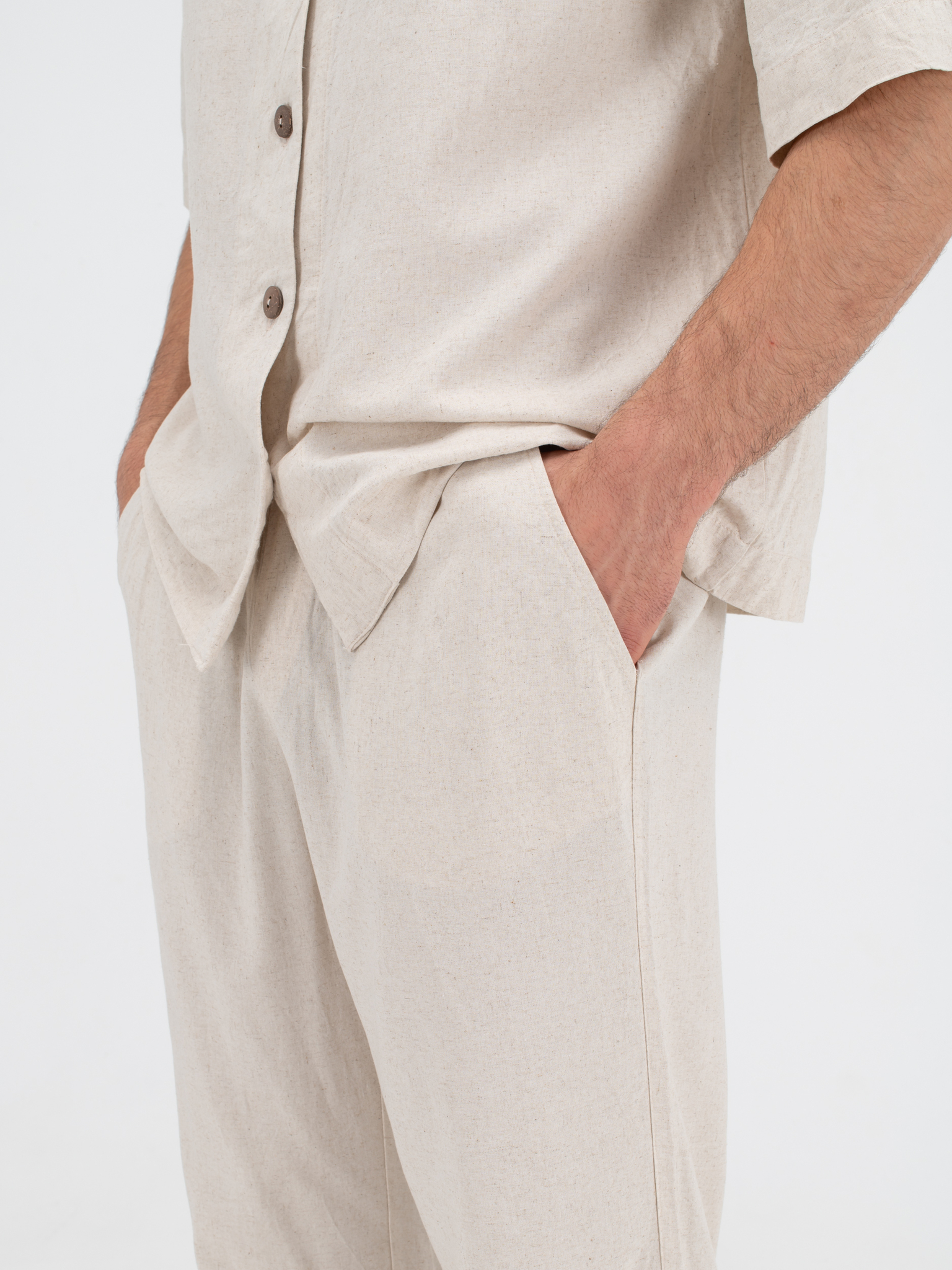 Льняной костюм — это идеальный выбор для теплого времени года, когда важны как стиль, так и комфорт. Этот текстиль обладает уникальными свойствами, которые делают его популярным среди любителей легкой и дышащей одежды. Особенно привлекательным является сочетание льна с вискозой — этот дуэт не только улучшает качество ткани, но и придает ей более изысканный вид.Рубашка из льна с добавлением вискозы будет обладать мягкостью и легкостью, что делает её приятной на ощупь и не вызывает дискомфорта даже в самые жаркие дни. Вискоза, являясь искусственным волокном, усиливает драпируемость ткани и помогает избежать морщин, что особенно важно для сохранения аккуратного вида. Такой материал хорошо подчеркивает фигуру, создавая элегантные силуэты.Брюки, сшитые из льняной ткани с вискозой, также станут удачным дополнением к образу. Они обеспечивают свободу движений и не стесняют. Легкий крой и натуральный состав помогают поддерживать комфорт, позволяя коже "дышать". Такие брюки можно носить как в строгом офисном стиле, так и в более расслабленном, например, на прогулках или вечеринках.Декатирование — важный этап в процессе производства льняных тканей, который позволяет устранить усадку и придать материалу необходимую форму. После декатирования ткань становится еще более прочной и устойчивой к деформации, что особенно важно для изделий, которые предполагается носить регулярно. Этот процесс сохраняет первоначальные характеристики ткани, позволяя убедиться, что ваш стильный льняной костюм надолго останется в прекрасном состоянии.Таким образом, льняной костюм, состоящий из рубашки и брюк, сшитых из смеси льна и вискозы, является великолепным выбором для тех, кто ценит комфорт и стиль. Он идеально подходит как для повседневной носки, так и для более торжественных случаев, создавая впечатление уверенности и утонченности.