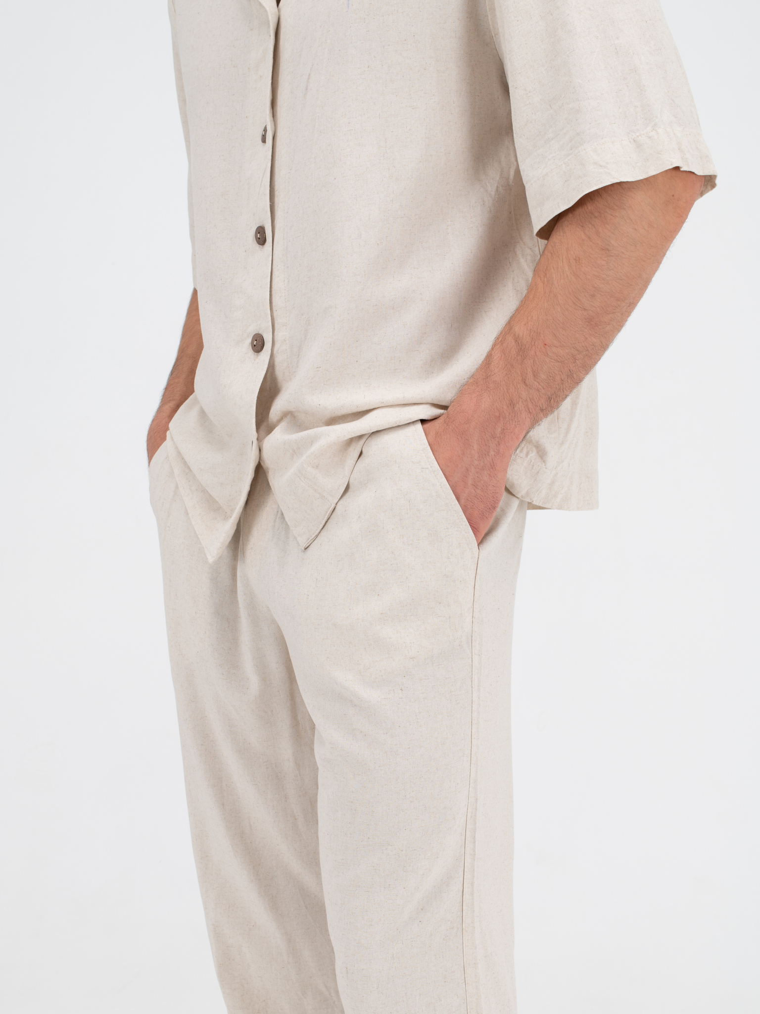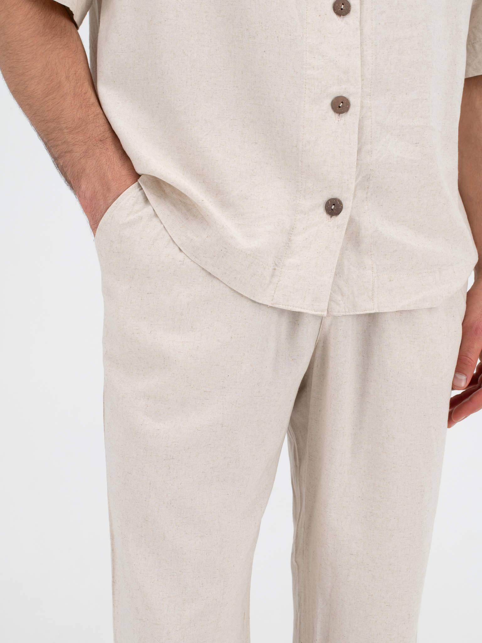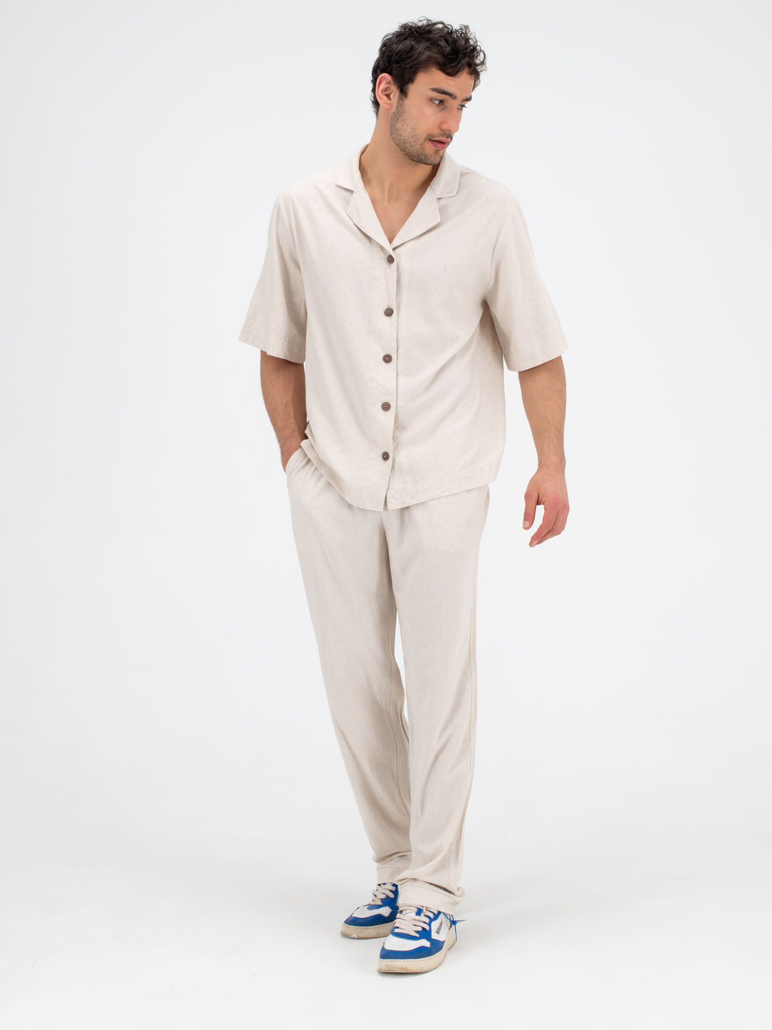 Льняной костюм — это идеальный выбор для теплого времени года, когда важны как стиль, так и комфорт. Этот текстиль обладает уникальными свойствами, которые делают его популярным среди любителей легкой и дышащей одежды. Особенно привлекательным является сочетание льна с вискозой — этот дуэт не только улучшает качество ткани, но и придает ей более изысканный вид.Рубашка из льна с добавлением вискозы будет обладать мягкостью и легкостью, что делает её приятной на ощупь и не вызывает дискомфорта даже в самые жаркие дни. Вискоза, являясь искусственным волокном, усиливает драпируемость ткани и помогает избежать морщин, что особенно важно для сохранения аккуратного вида. Такой материал хорошо подчеркивает фигуру, создавая элегантные силуэты.Брюки, сшитые из льняной ткани с вискозой, также станут удачным дополнением к образу. Они обеспечивают свободу движений и не стесняют. Легкий крой и натуральный состав помогают поддерживать комфорт, позволяя коже "дышать". Такие брюки можно носить как в строгом офисном стиле, так и в более расслабленном, например, на прогулках или вечеринках.Декатирование — важный этап в процессе производства льняных тканей, который позволяет устранить усадку и придать материалу необходимую форму. После декатирования ткань становится еще более прочной и устойчивой к деформации, что особенно важно для изделий, которые предполагается носить регулярно. Этот процесс сохраняет первоначальные характеристики ткани, позволяя убедиться, что ваш стильный льняной костюм надолго останется в прекрасном состоянии.Таким образом, льняной костюм, состоящий из рубашки и брюк, сшитых из смеси льна и вискозы, является великолепным выбором для тех, кто ценит комфорт и стиль. Он идеально подходит как для повседневной носки, так и для более торжественных случаев, создавая впечатление уверенности и утонченности.