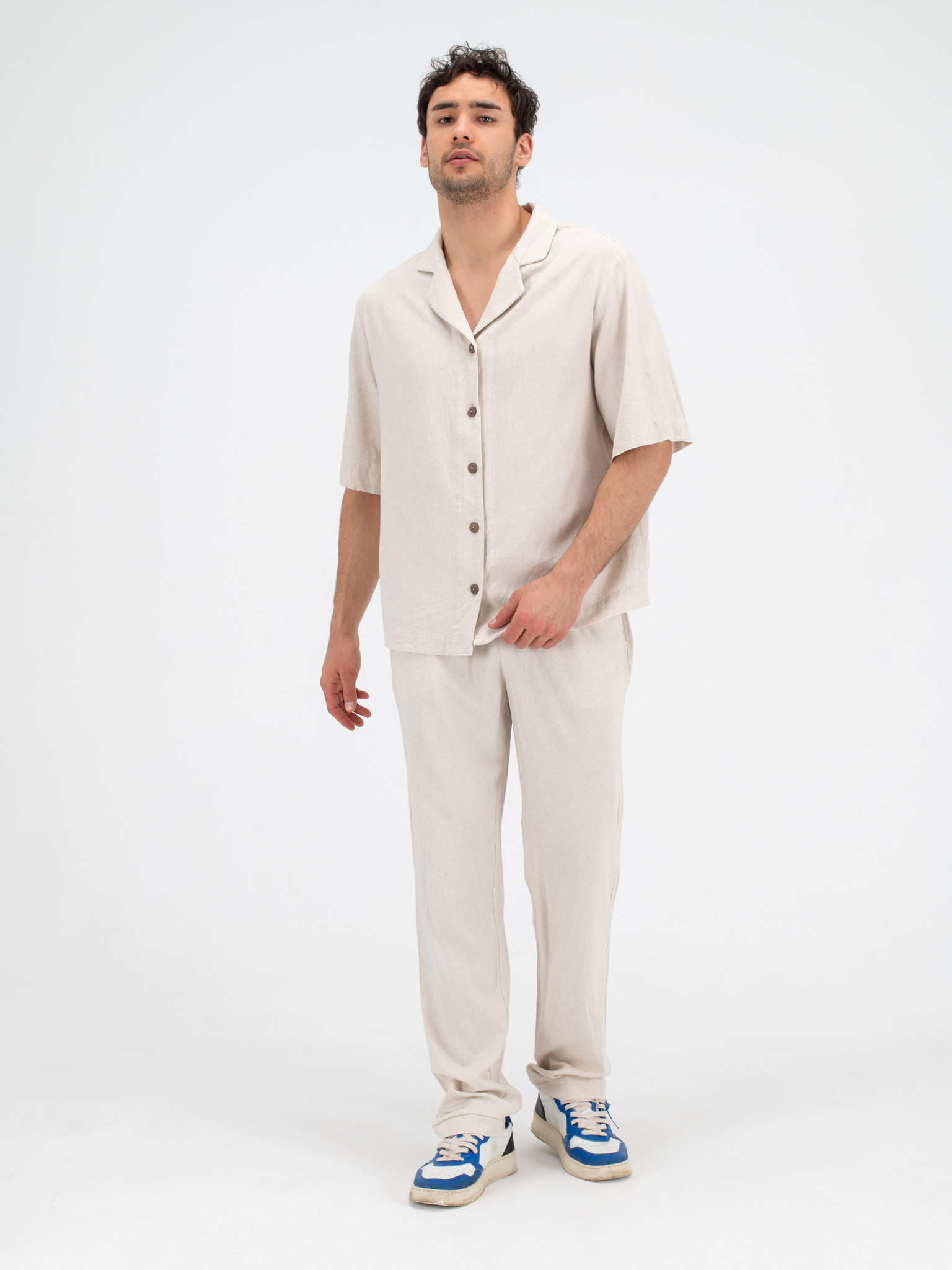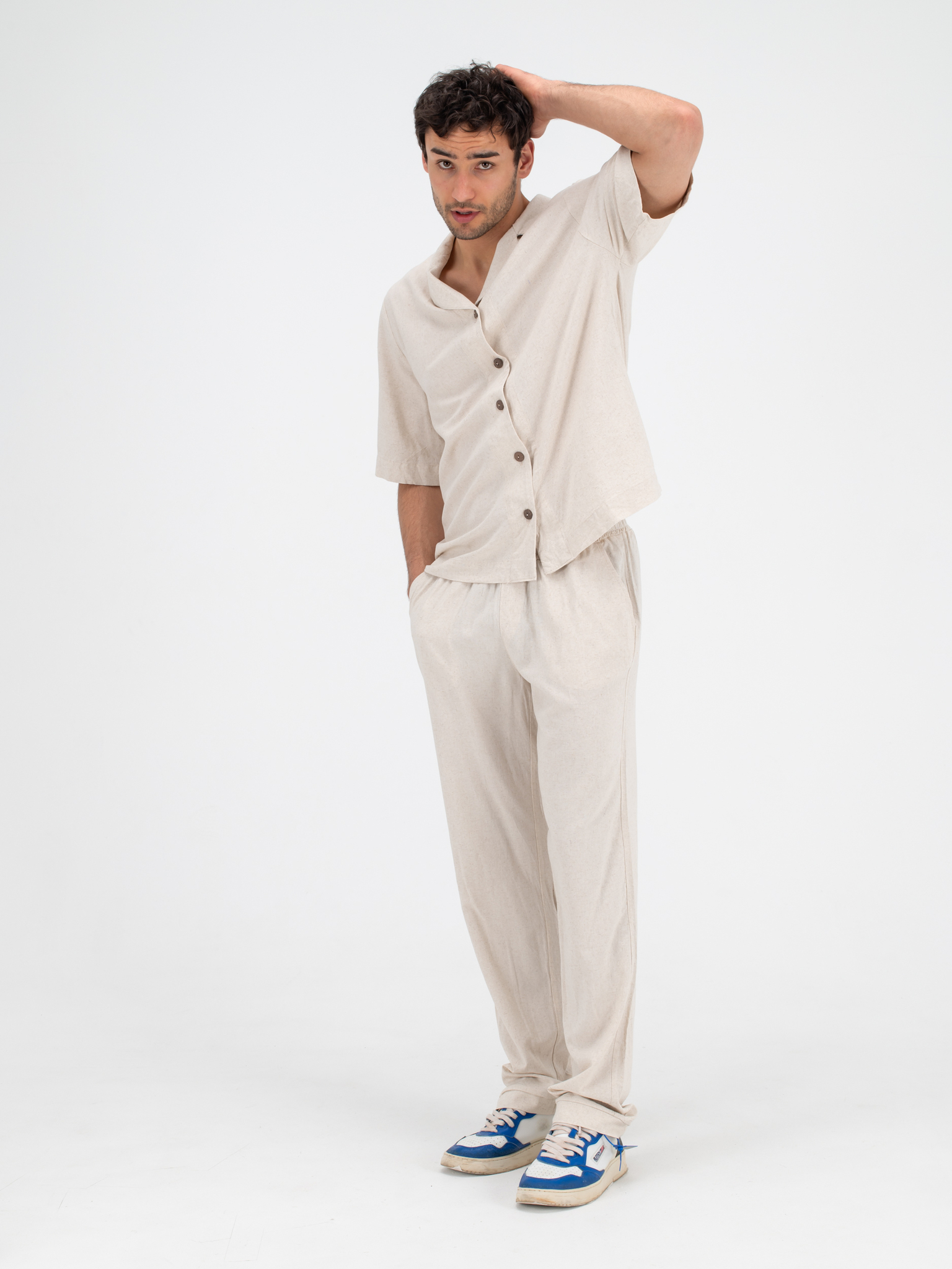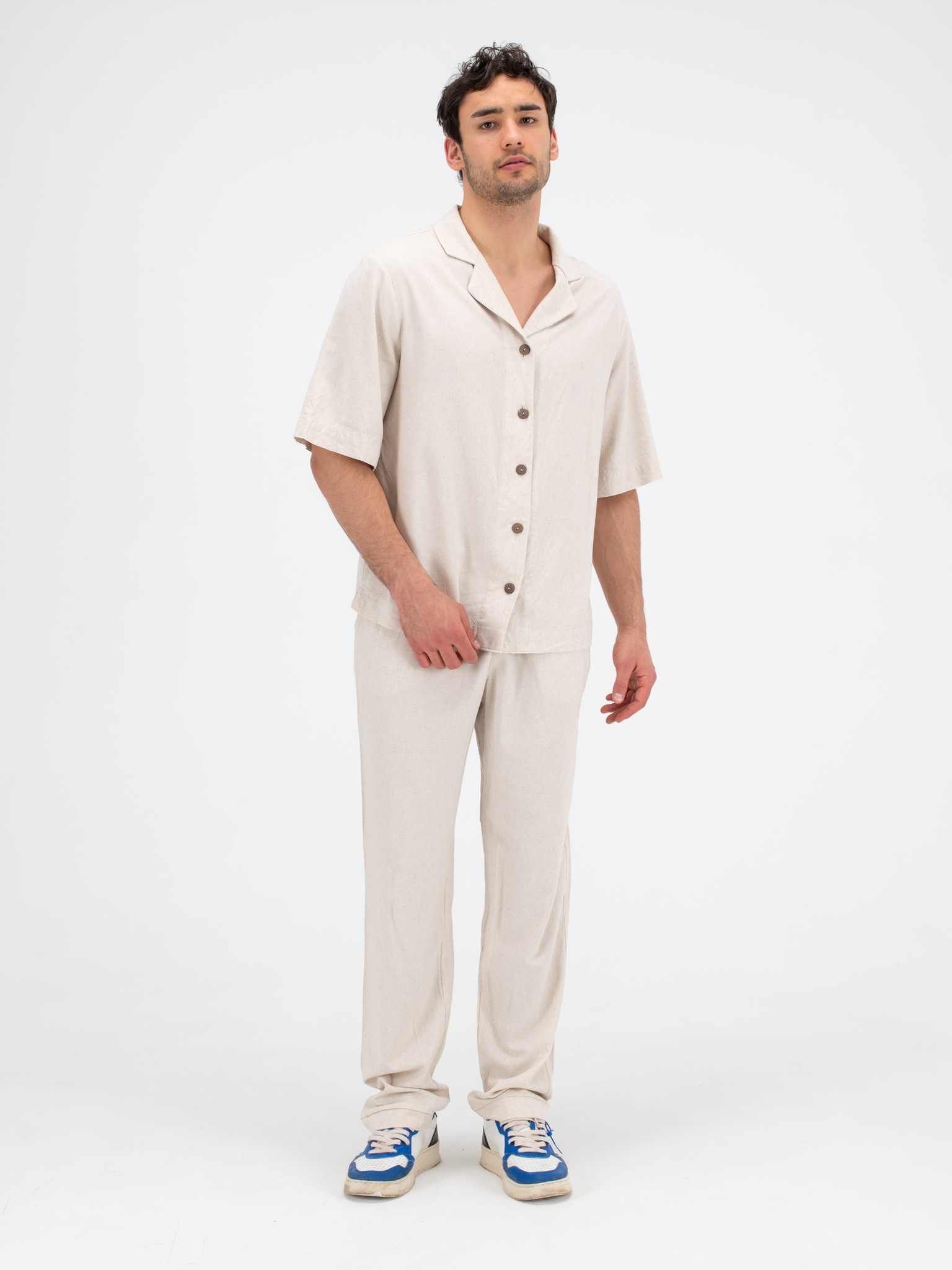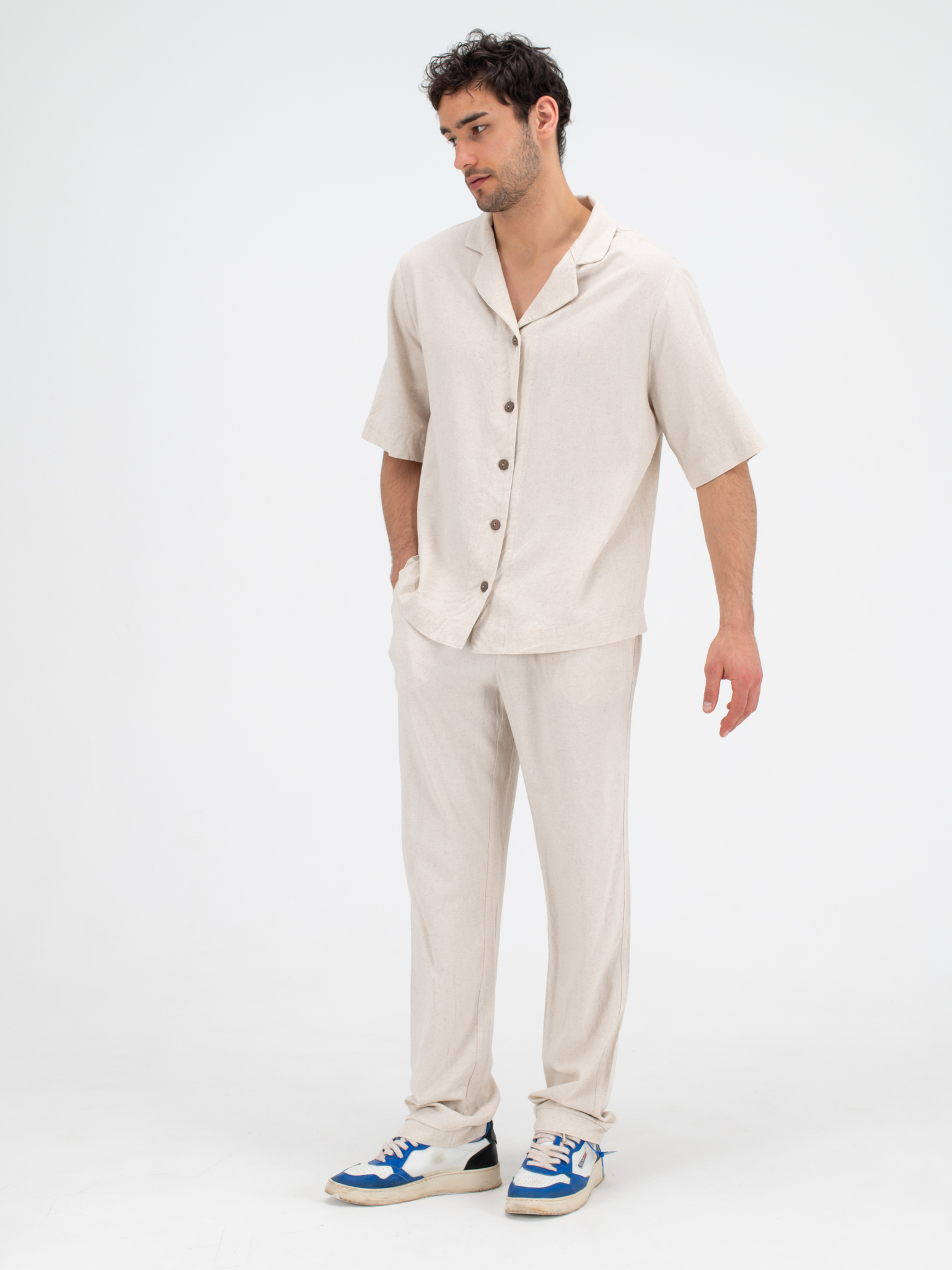 Льняной костюм — это идеальный выбор для теплого времени года, когда важны как стиль, так и комфорт. Этот текстиль обладает уникальными свойствами, которые делают его популярным среди любителей легкой и дышащей одежды. Особенно привлекательным является сочетание льна с вискозой — этот дуэт не только улучшает качество ткани, но и придает ей более изысканный вид.Рубашка из льна с добавлением вискозы будет обладать мягкостью и легкостью, что делает её приятной на ощупь и не вызывает дискомфорта даже в самые жаркие дни. Вискоза, являясь искусственным волокном, усиливает драпируемость ткани и помогает избежать морщин, что особенно важно для сохранения аккуратного вида. Такой материал хорошо подчеркивает фигуру, создавая элегантные силуэты.Брюки, сшитые из льняной ткани с вискозой, также станут удачным дополнением к образу. Они обеспечивают свободу движений и не стесняют. Легкий крой и натуральный состав помогают поддерживать комфорт, позволяя коже "дышать". Такие брюки можно носить как в строгом офисном стиле, так и в более расслабленном, например, на прогулках или вечеринках.Декатирование — важный этап в процессе производства льняных тканей, который позволяет устранить усадку и придать материалу необходимую форму. После декатирования ткань становится еще более прочной и устойчивой к деформации, что особенно важно для изделий, которые предполагается носить регулярно. Этот процесс сохраняет первоначальные характеристики ткани, позволяя убедиться, что ваш стильный льняной костюм надолго останется в прекрасном состоянии.Таким образом, льняной костюм, состоящий из рубашки и брюк, сшитых из смеси льна и вискозы, является великолепным выбором для тех, кто ценит комфорт и стиль. Он идеально подходит как для повседневной носки, так и для более торжественных случаев, создавая впечатление уверенности и утонченности.