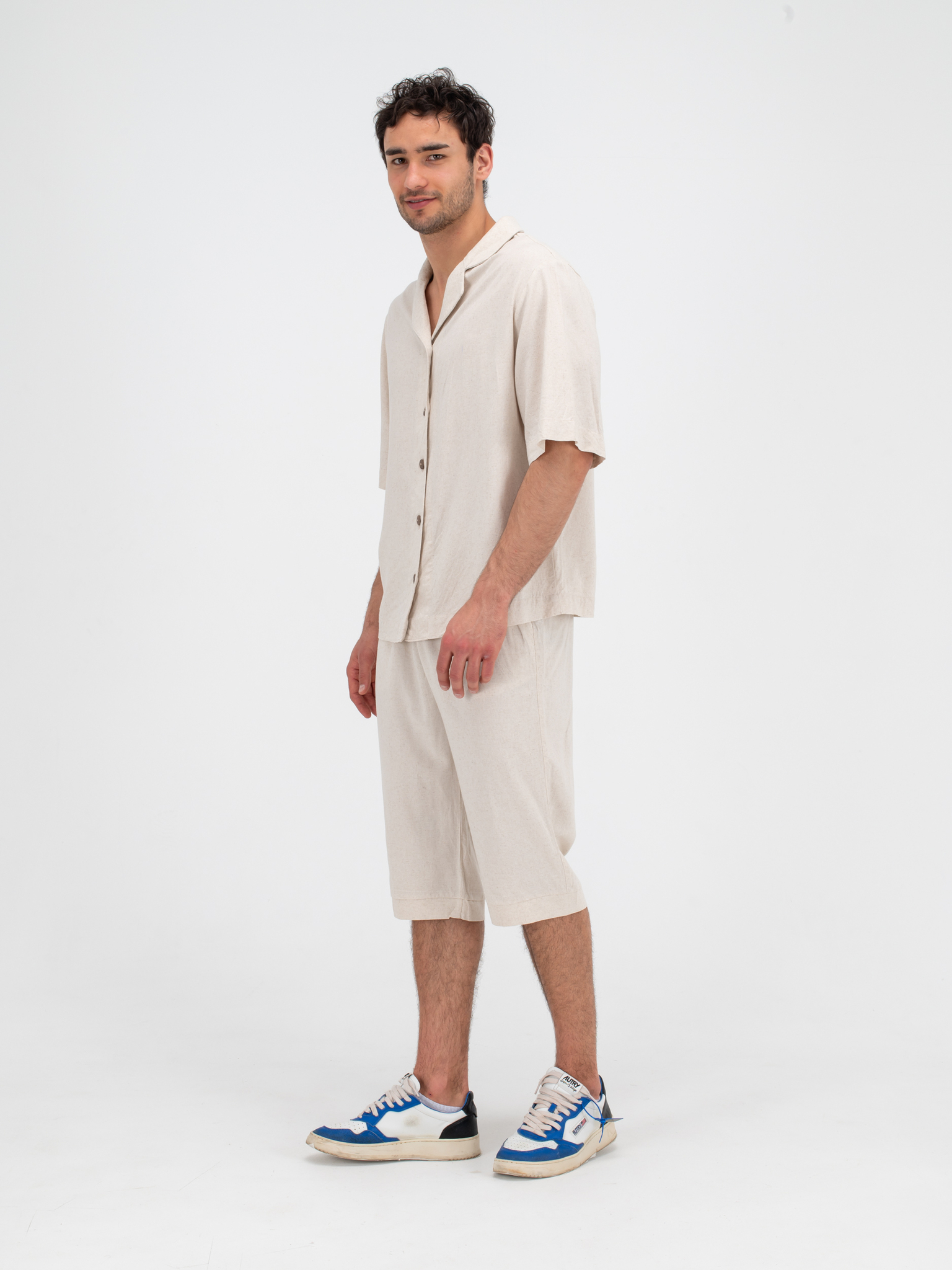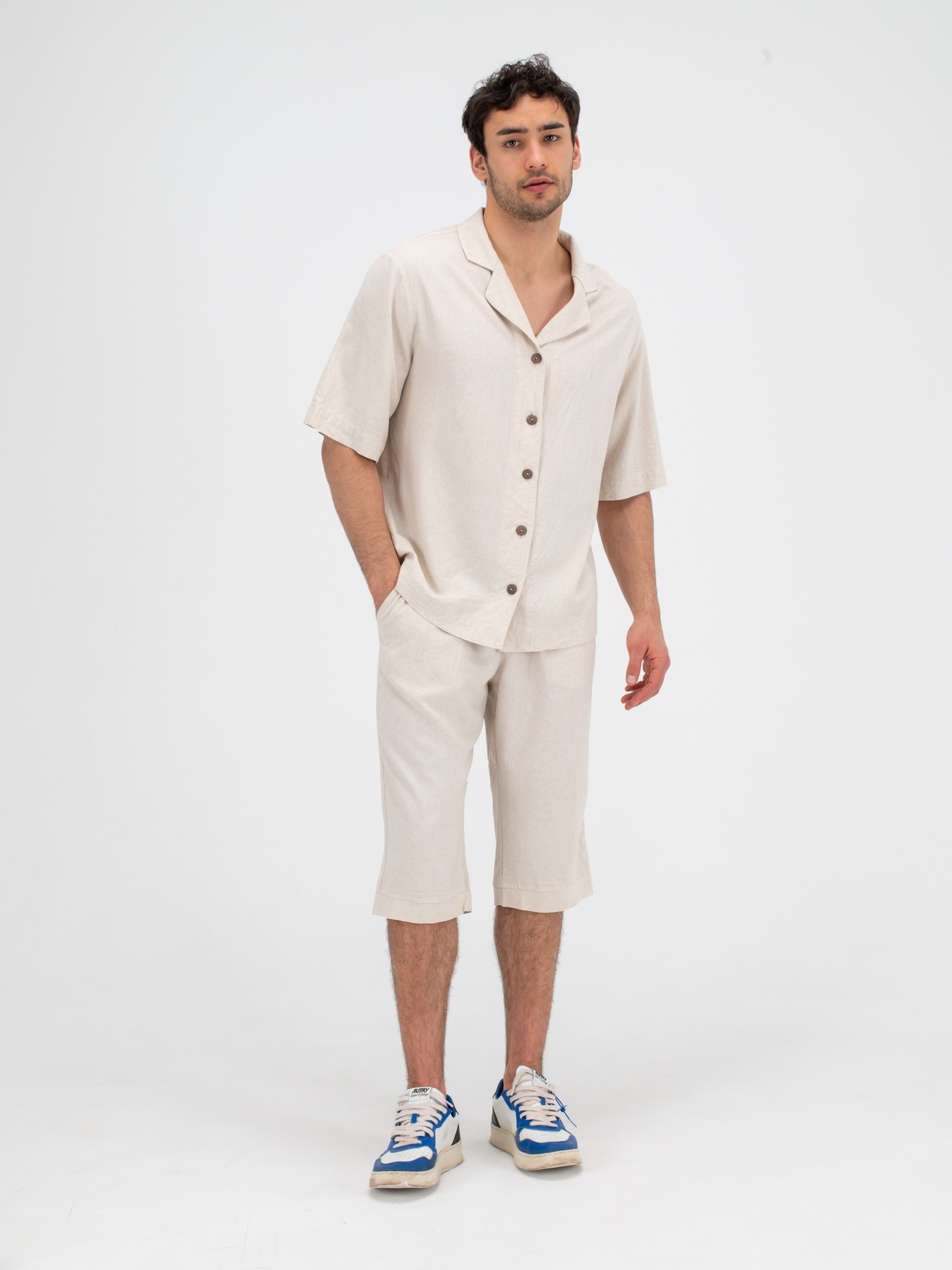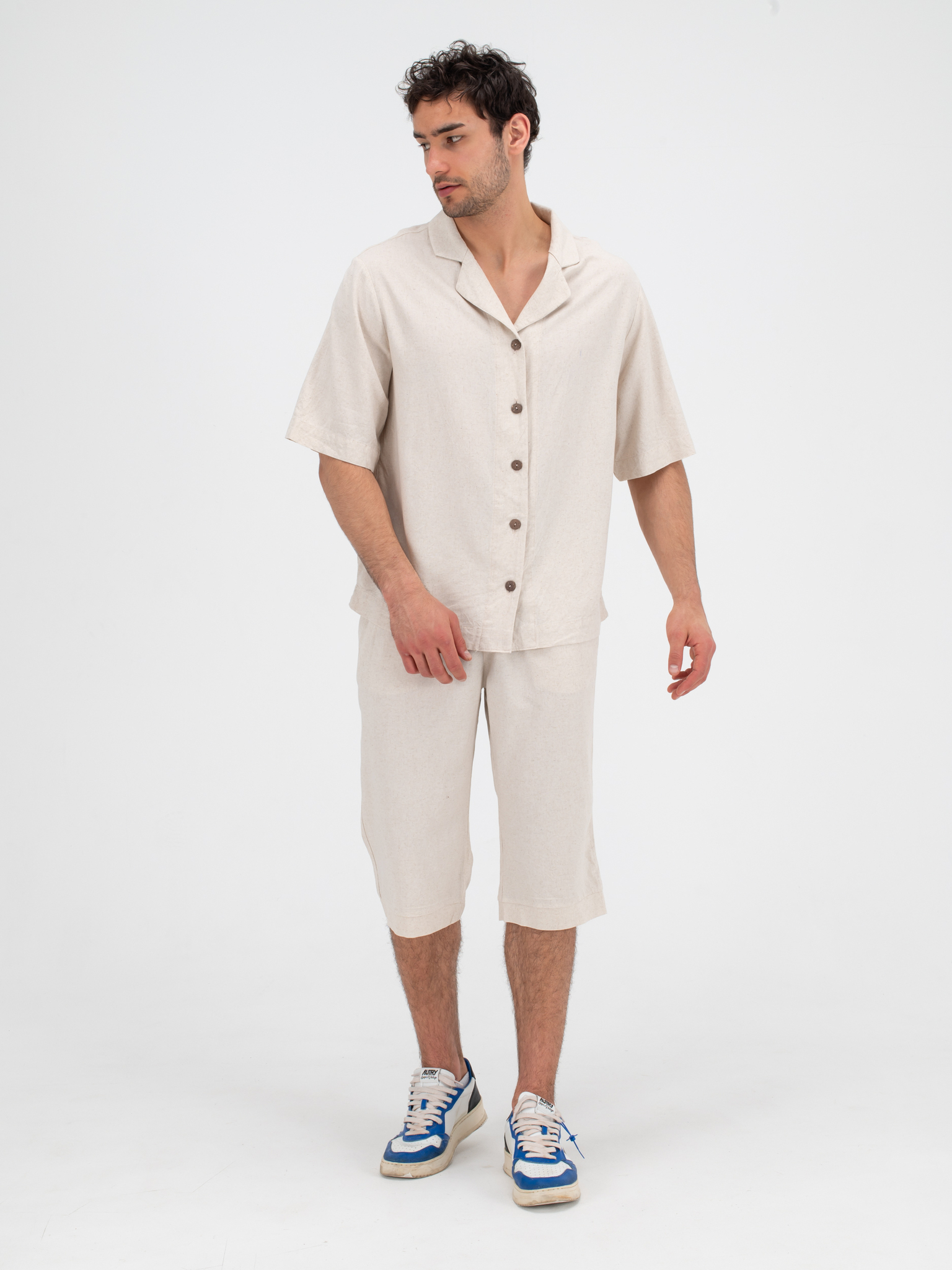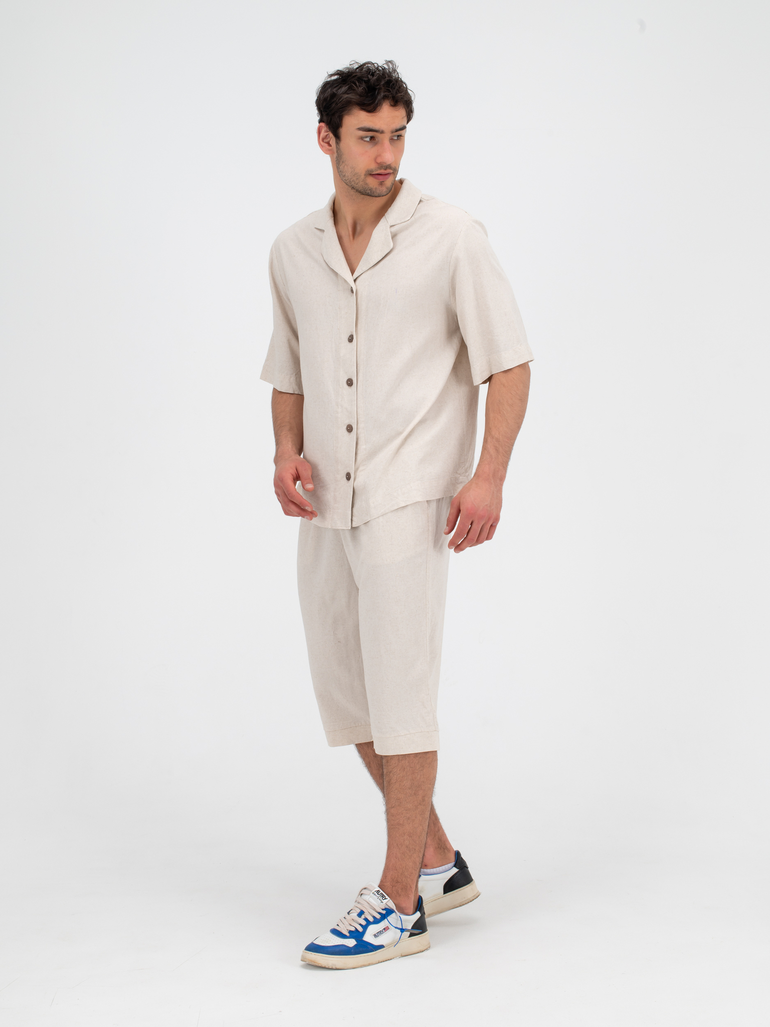 Костюм льняной с шортами. Песочный