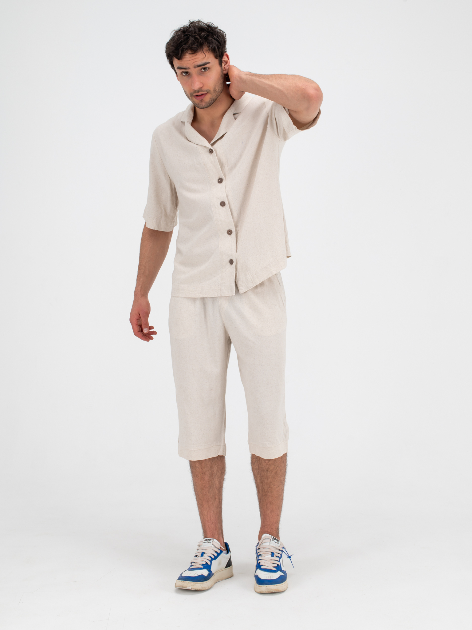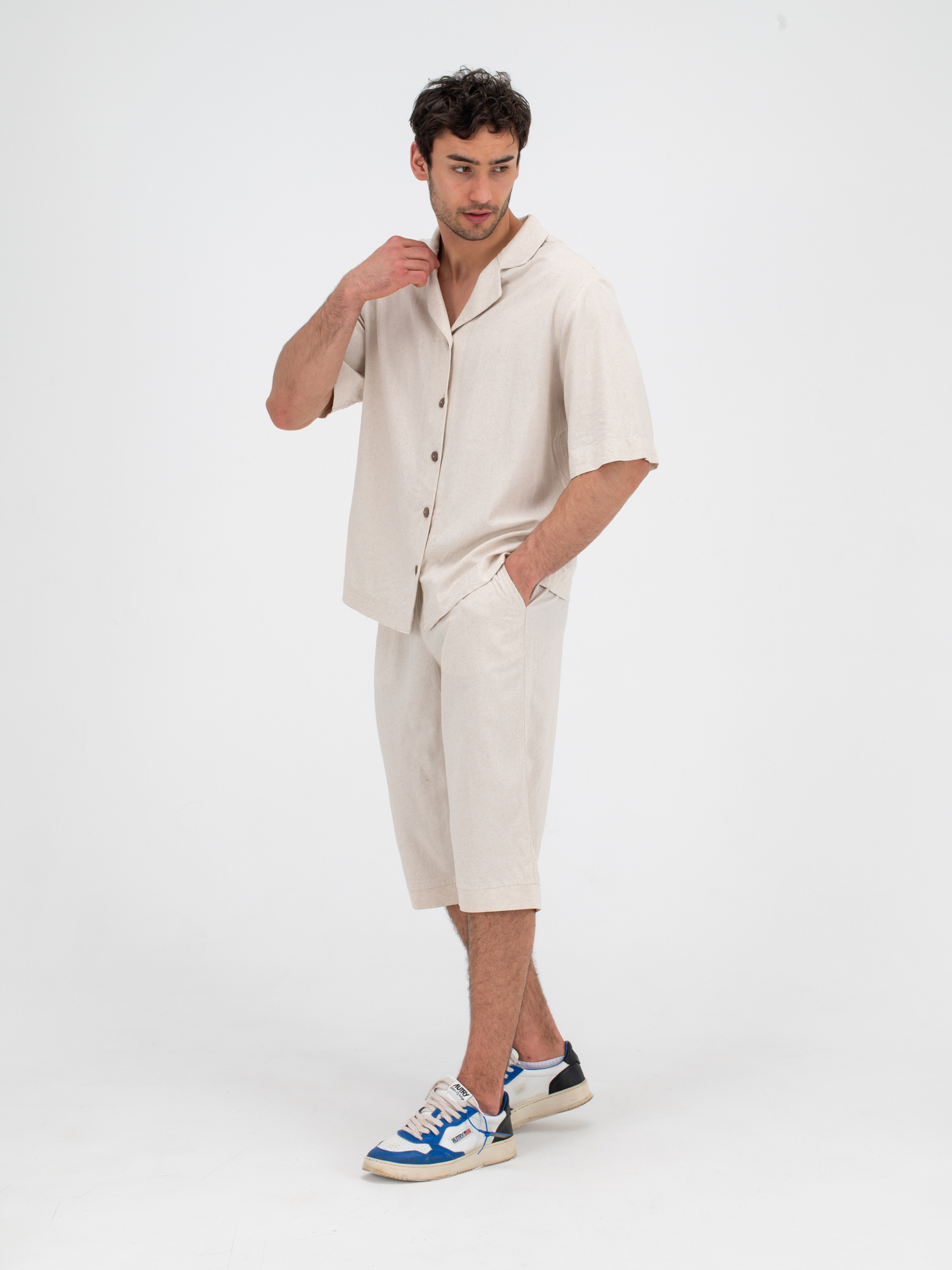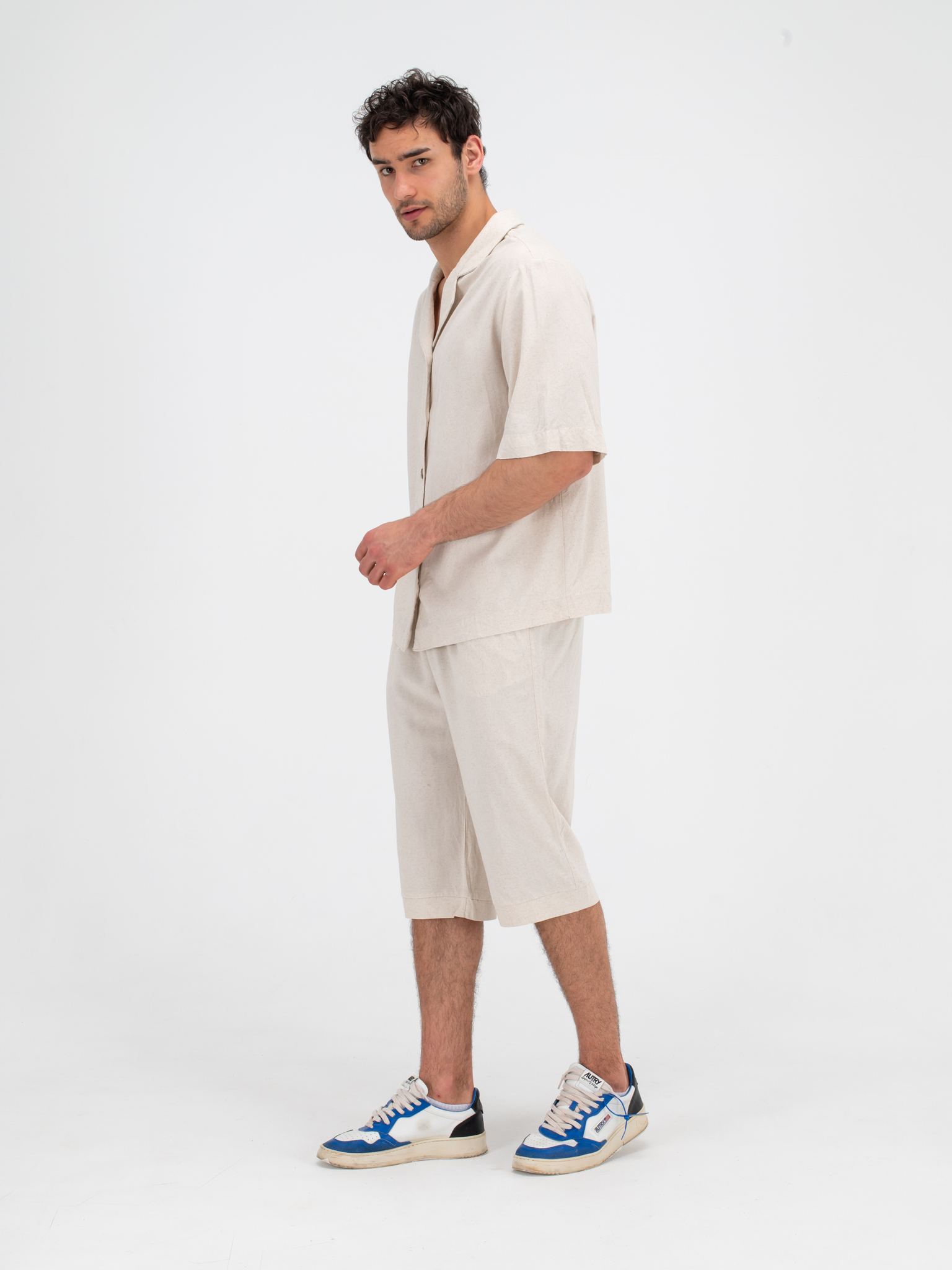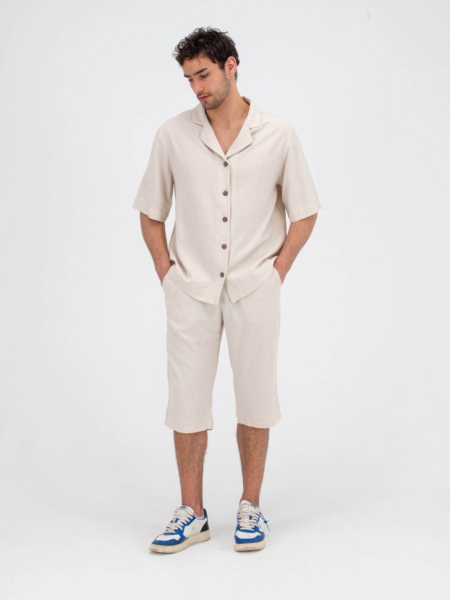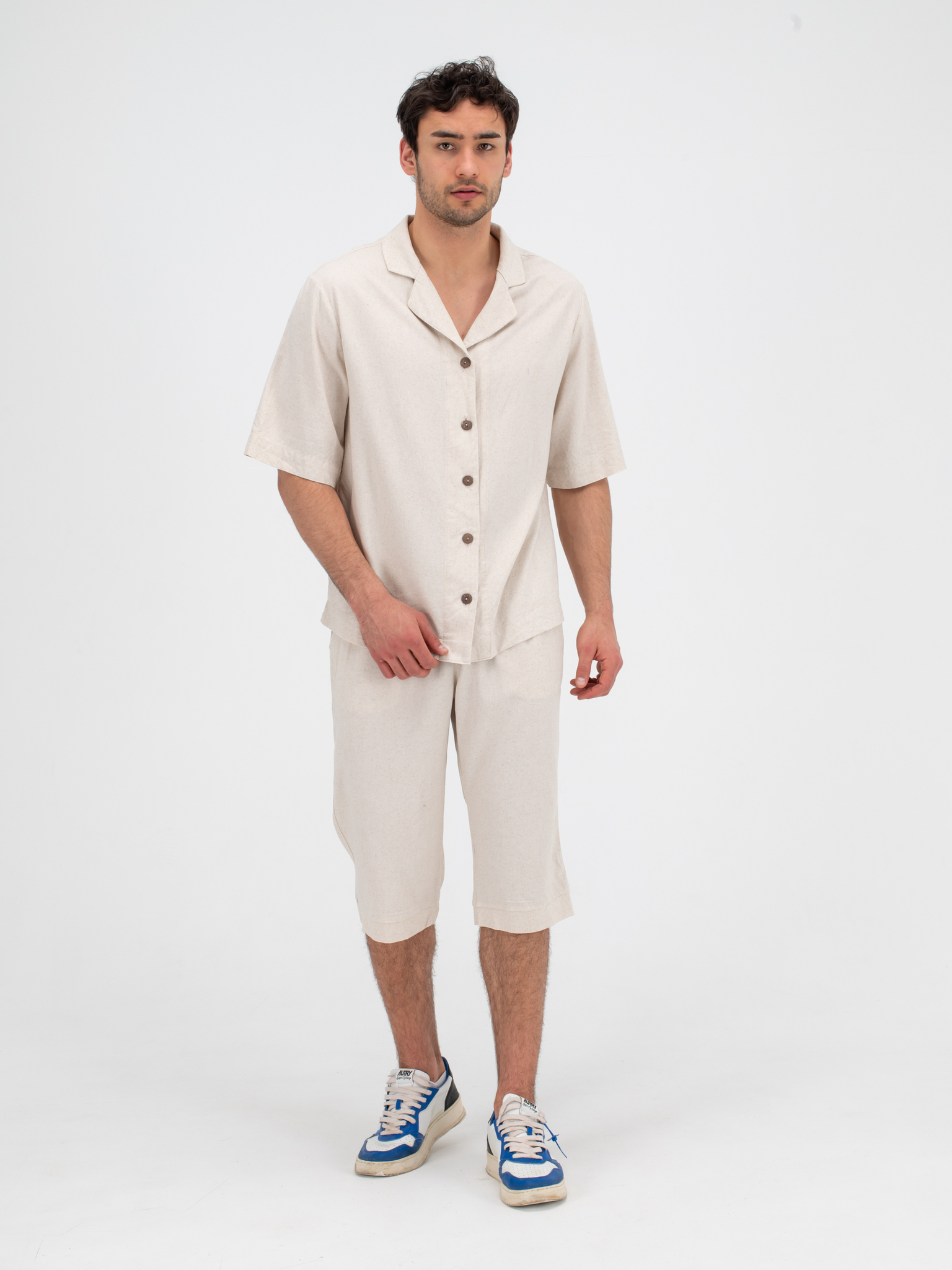 Костюм льняной с шортами. Песочный