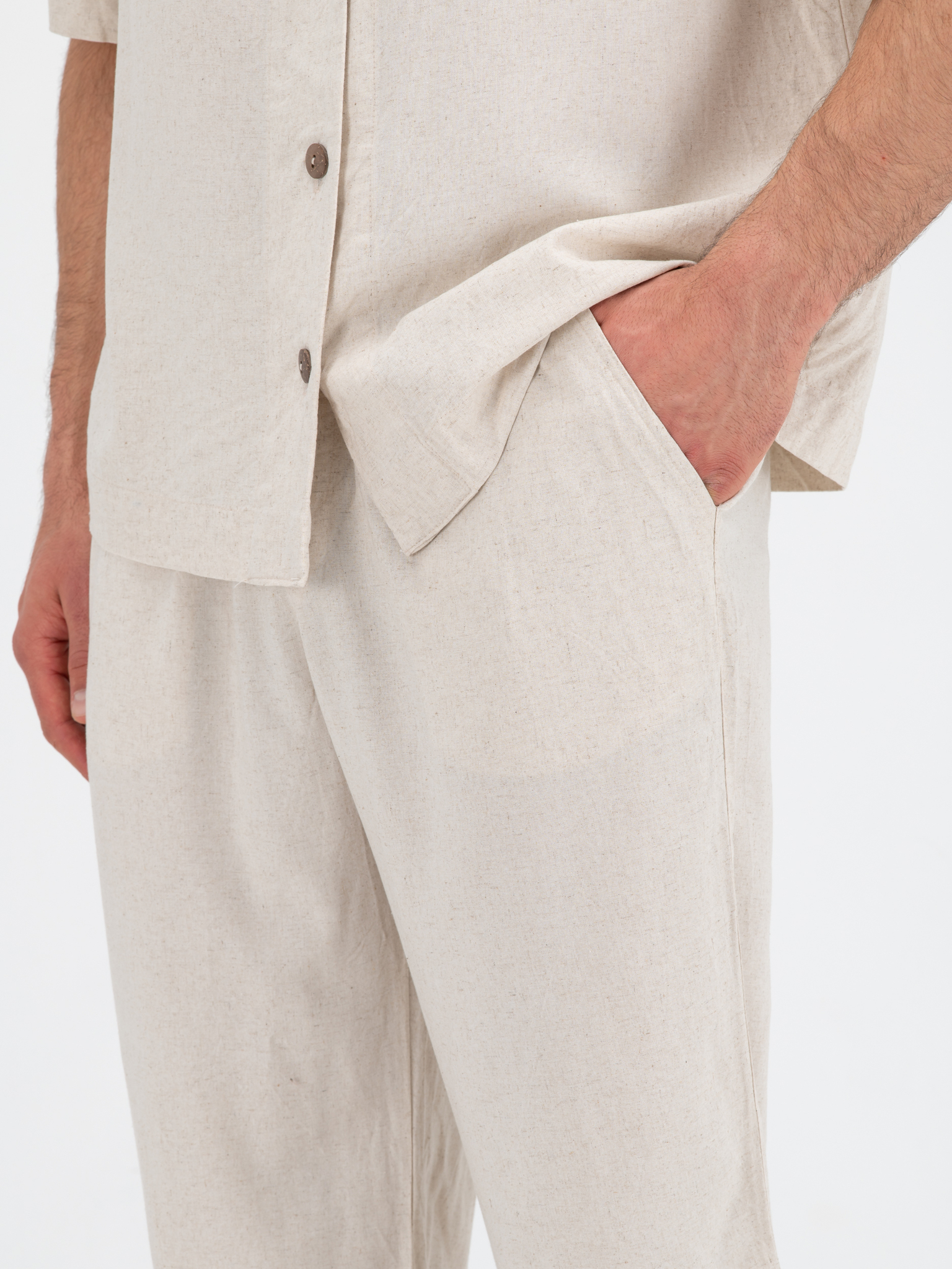 Льняной костюм — это идеальный выбор для теплого времени года, когда важны как стиль, так и комфорт. Этот текстиль обладает уникальными свойствами, которые делают его популярным среди любителей легкой и дышащей одежды. Особенно привлекательным является сочетание льна с вискозой — этот дуэт не только улучшает качество ткани, но и придает ей более изысканный вид.Рубашка из льна с добавлением вискозы будет обладать мягкостью и легкостью, что делает её приятной на ощупь и не вызывает дискомфорта даже в самые жаркие дни. Вискоза, являясь искусственным волокном, усиливает драпируемость ткани и помогает избежать морщин, что особенно важно для сохранения аккуратного вида. Такой материал хорошо подчеркивает фигуру, создавая элегантные силуэты.Брюки, сшитые из льняной ткани с вискозой, также станут удачным дополнением к образу. Они обеспечивают свободу движений и не стесняют. Легкий крой и натуральный состав помогают поддерживать комфорт, позволяя коже "дышать". Такие брюки можно носить как в строгом офисном стиле, так и в более расслабленном, например, на прогулках или вечеринках.Декатирование — важный этап в процессе производства льняных тканей, который позволяет устранить усадку и придать материалу необходимую форму. После декатирования ткань становится еще более прочной и устойчивой к деформации, что особенно важно для изделий, которые предполагается носить регулярно. Этот процесс сохраняет первоначальные характеристики ткани, позволяя убедиться, что ваш стильный льняной костюм надолго останется в прекрасном состоянии.Таким образом, льняной костюм, состоящий из рубашки и брюк, сшитых из смеси льна и вискозы, является великолепным выбором для тех, кто ценит комфорт и стиль. Он идеально подходит как для повседневной носки, так и для более торжественных случаев, создавая впечатление уверенности и утонченности.