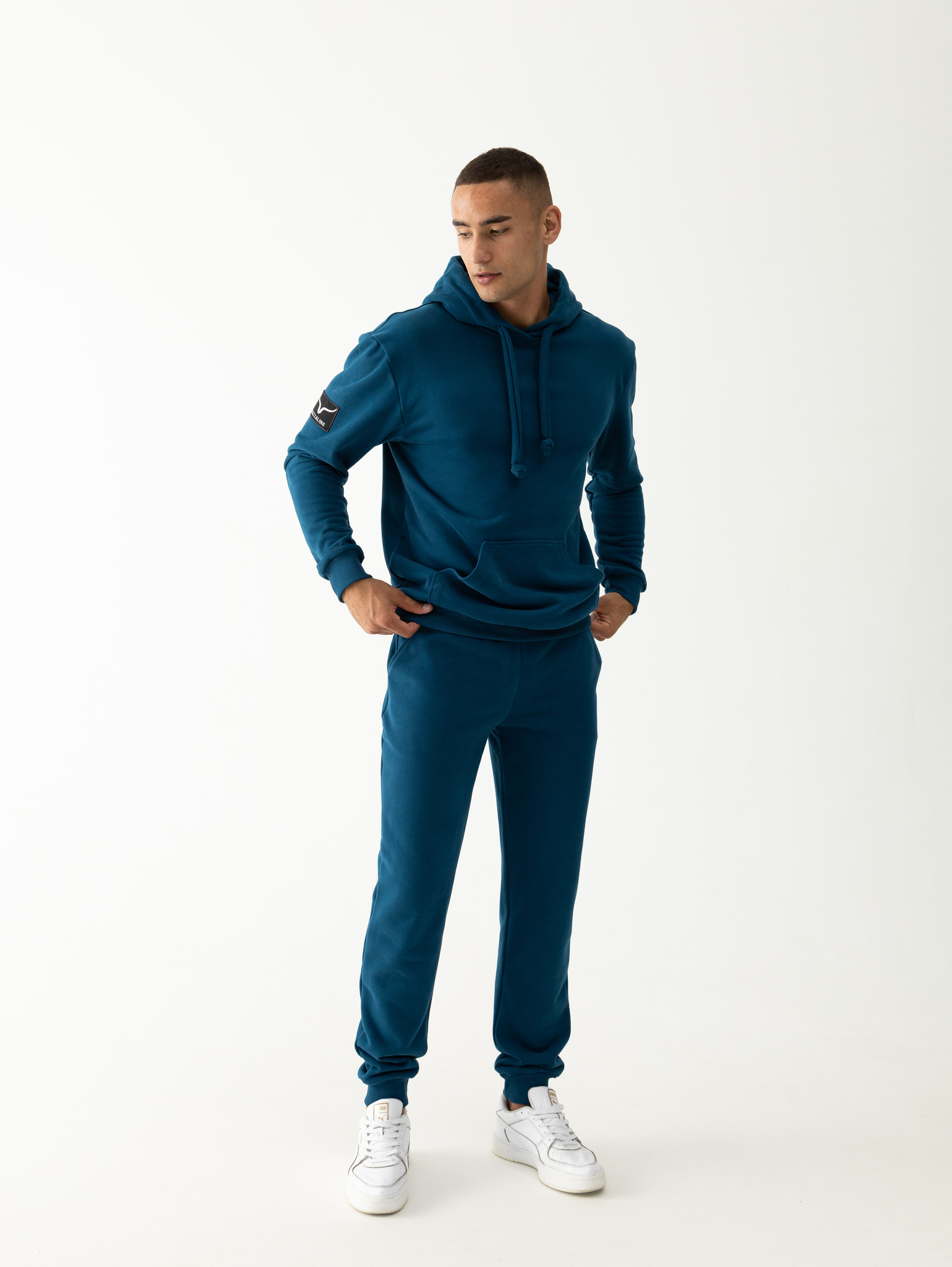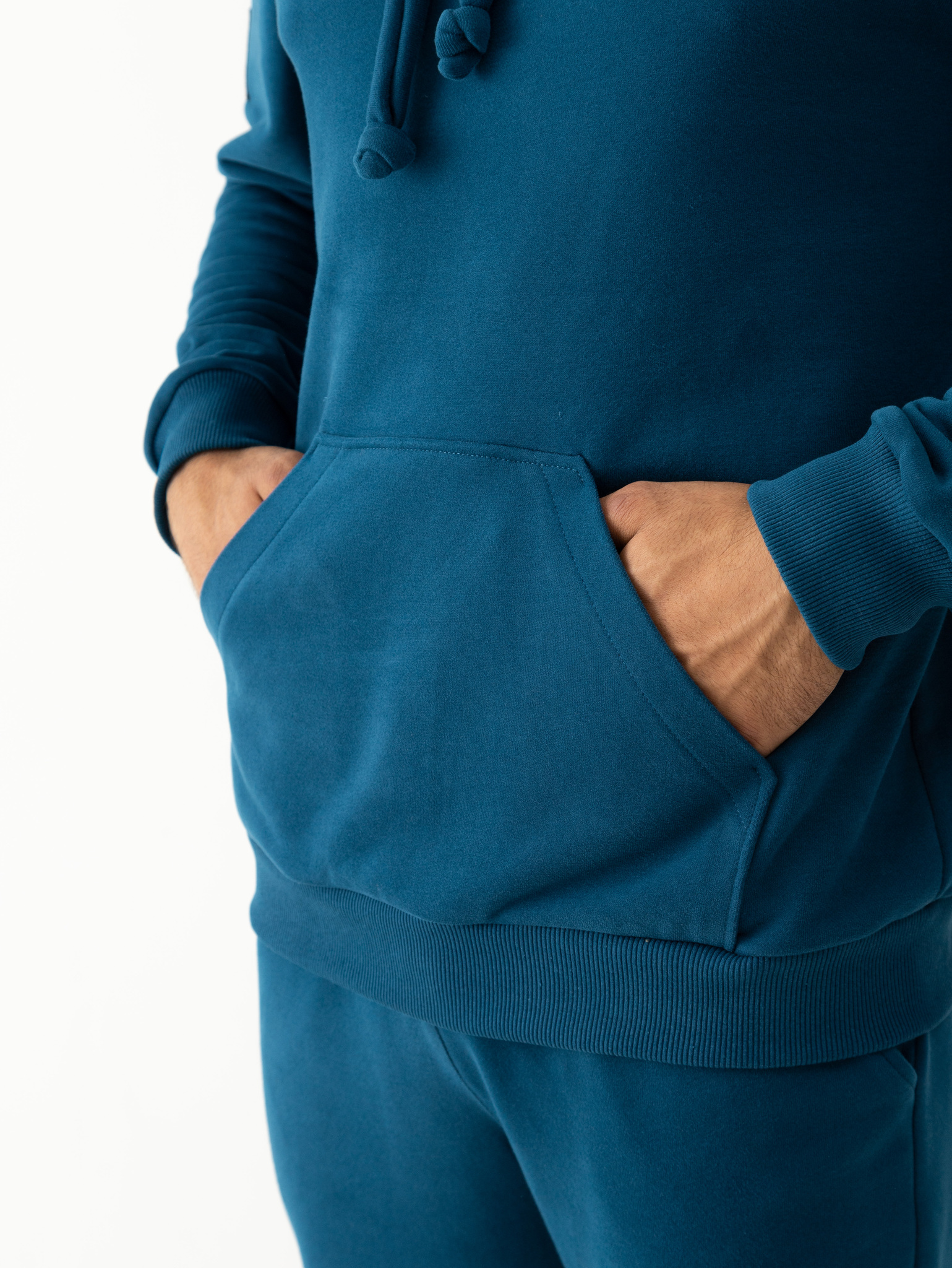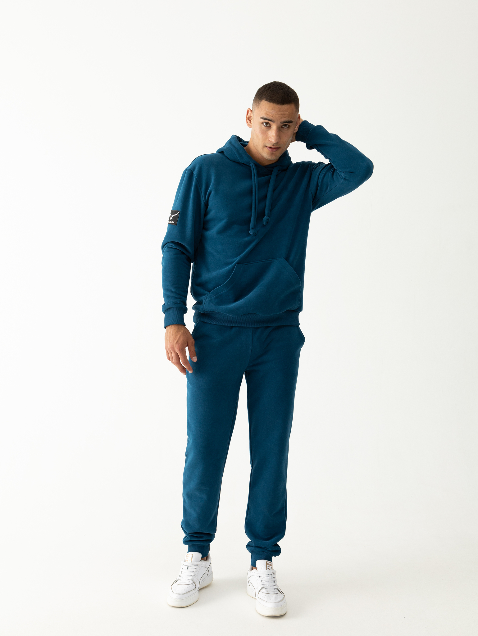 Костюм мужской спортивный без начеса выполнен из турецкого трикотажа премиального качества. Процесс декатирования гарантирует устойчивость формы и цвета даже после многократных стирок. Особое внимание привлекает двойной капюшон с шнурками ручной работы, добавляющий индивидуальности и практичности. Посадка брюк на бедрах подчеркивает силуэт, а прошитый пояс обеспечивает удобство и надежную фиксацию. Штанины на манжетах завершают образ, придавая ему аккуратность и современный вид. Этот костюм станет идеальным выбором для тех, кто ценит качество, внимание к деталям и непревзойденный комфорт в повседневной жизни.