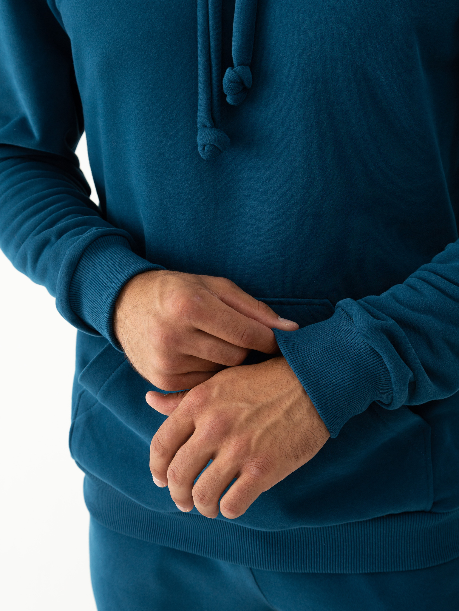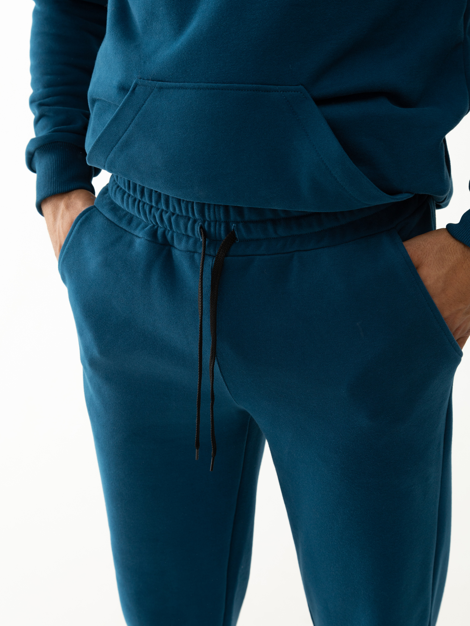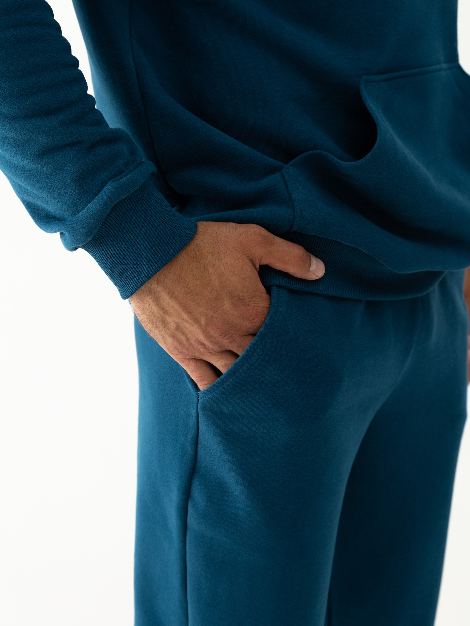 Костюм мужской спортивный без начеса выполнен из турецкого трикотажа премиального качества. Процесс декатирования гарантирует устойчивость формы и цвета даже после многократных стирок. Особое внимание привлекает двойной капюшон с шнурками ручной работы, добавляющий индивидуальности и практичности. Посадка брюк на бедрах подчеркивает силуэт, а прошитый пояс обеспечивает удобство и надежную фиксацию. Штанины на манжетах завершают образ, придавая ему аккуратность и современный вид. Этот костюм станет идеальным выбором для тех, кто ценит качество, внимание к деталям и непревзойденный комфорт в повседневной жизни.