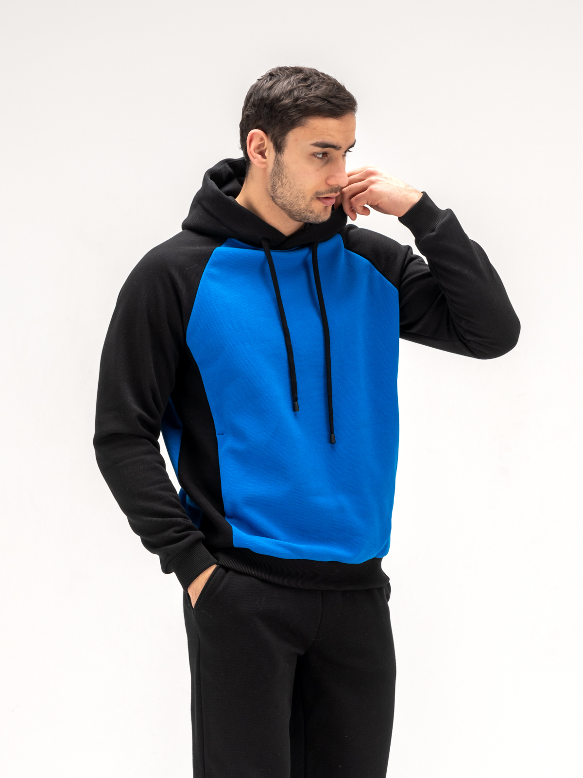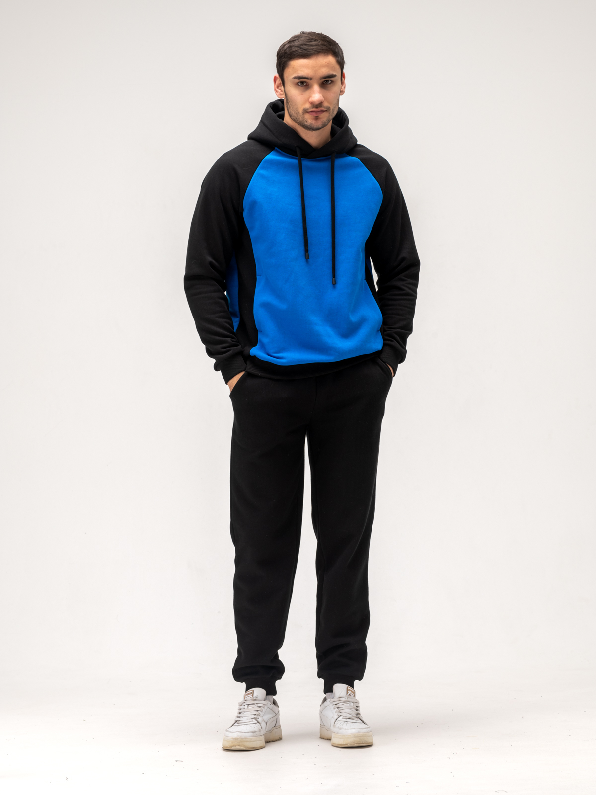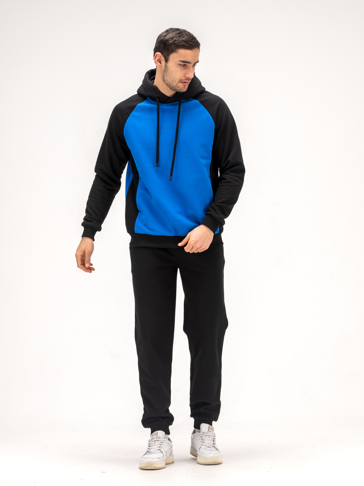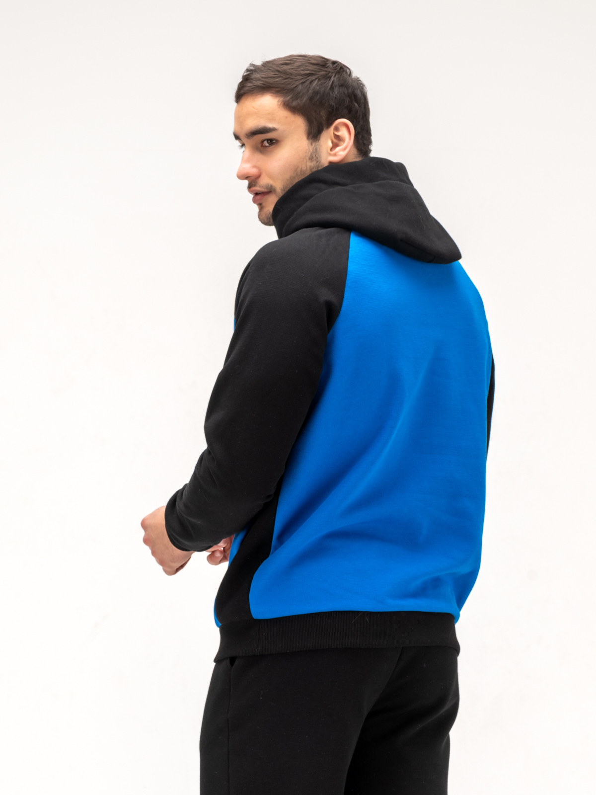 Костюм мужской спортивный с микроначесом – это идеальное сочетание стиля и комфорта для активных мужчин. Визуально привлекает гармония черного и ярко синего цвета, создающая динамичный и современный образ. Худи, выполненное на подкладе, обеспечивает надежную фиксацию карманов, что особенно удобно для хранения мелочей во время тренировок или прогулок..Декатирование ткани придает изделию высокую прочность и устойчивость к деформации, что делает костюм долговечным спутником в любых спортивных начинаниях. Используемый премиальный трикотаж турецкого производства отличается мягкостью и приятными тактильными ощущениями, обеспечивая комфорт даже во время интенсивных физических нагрузок.Этот костюм станет прекрасным выбором как для занятий спортом, так и для повседневной носки. Удобный и модный, он позволит выразить индивидуальность, поддерживая активный образ жизни. Каждый элемент костюма продуман до мелочей, что делает его незаменимым в мужском гардеробе современного человека.