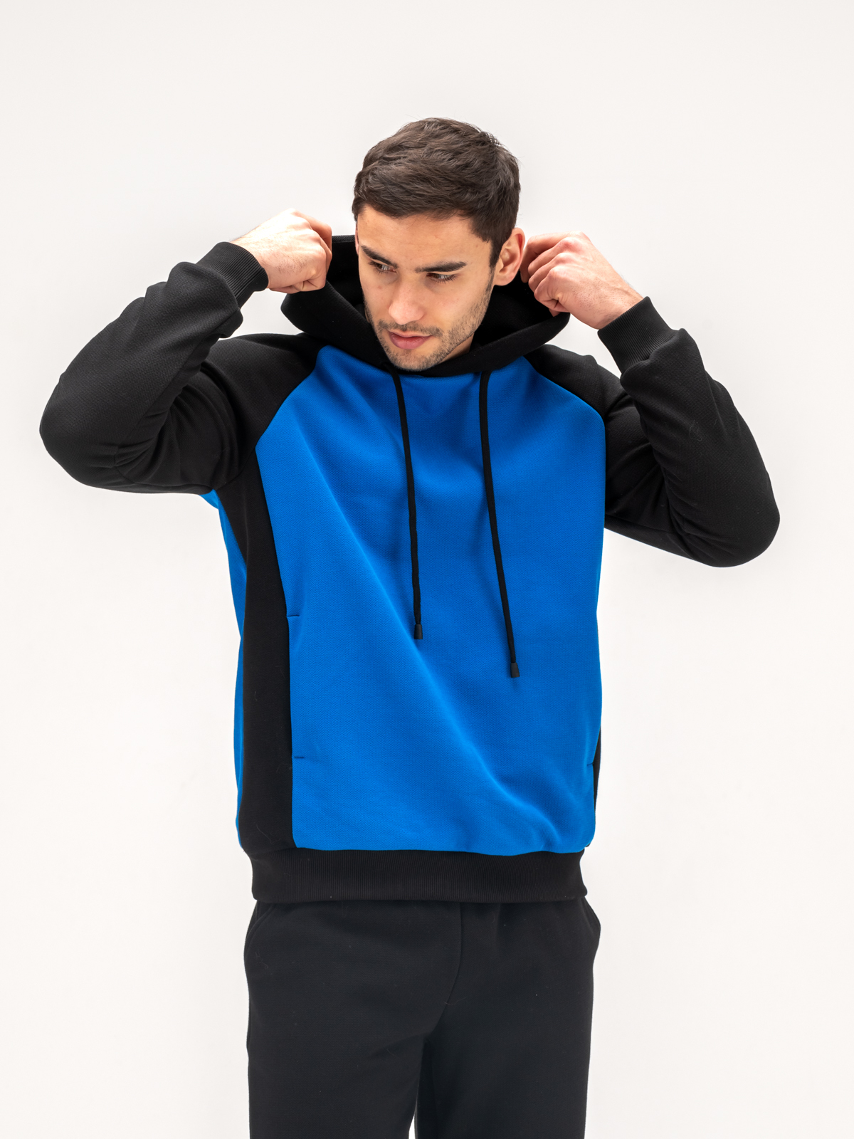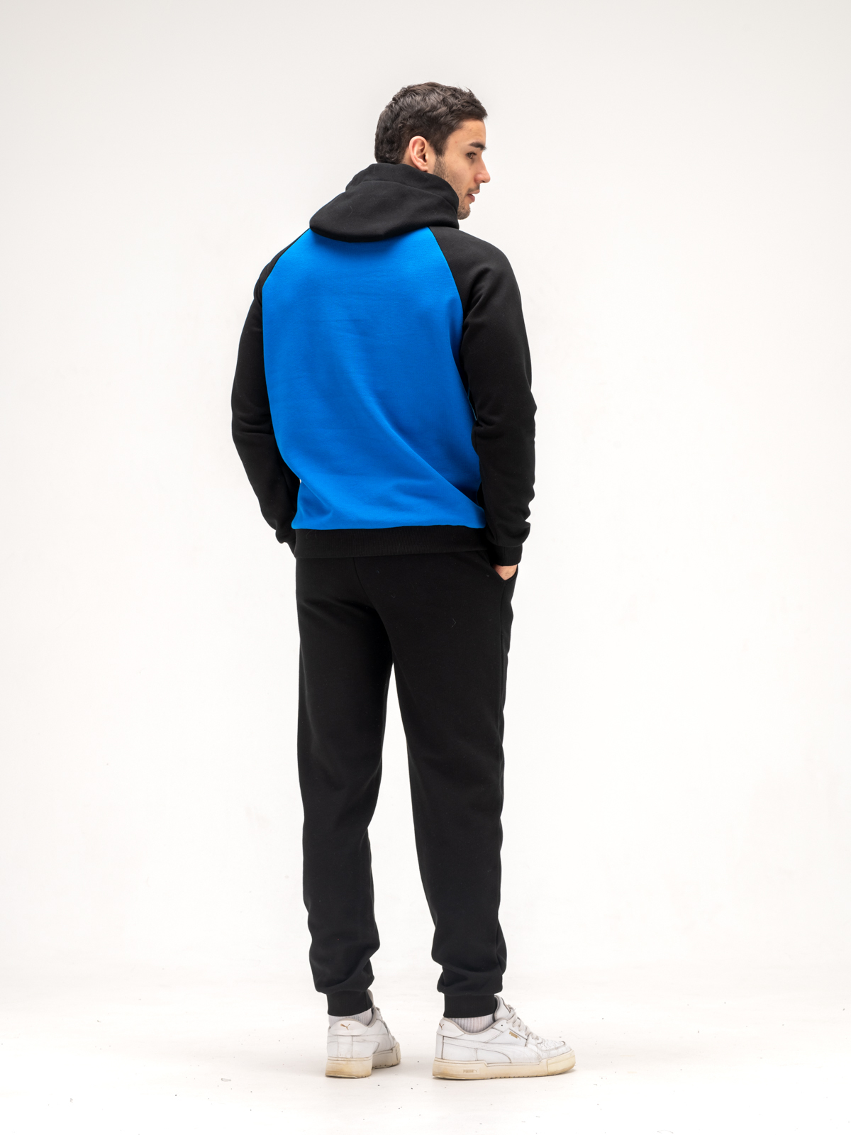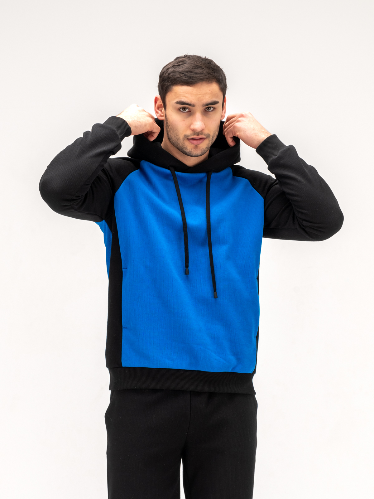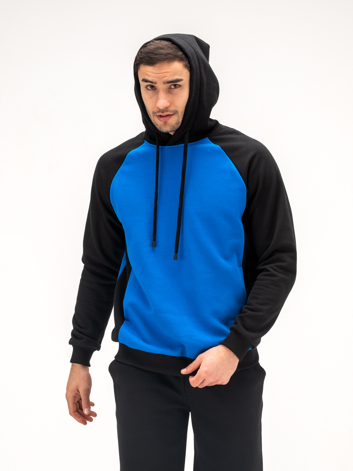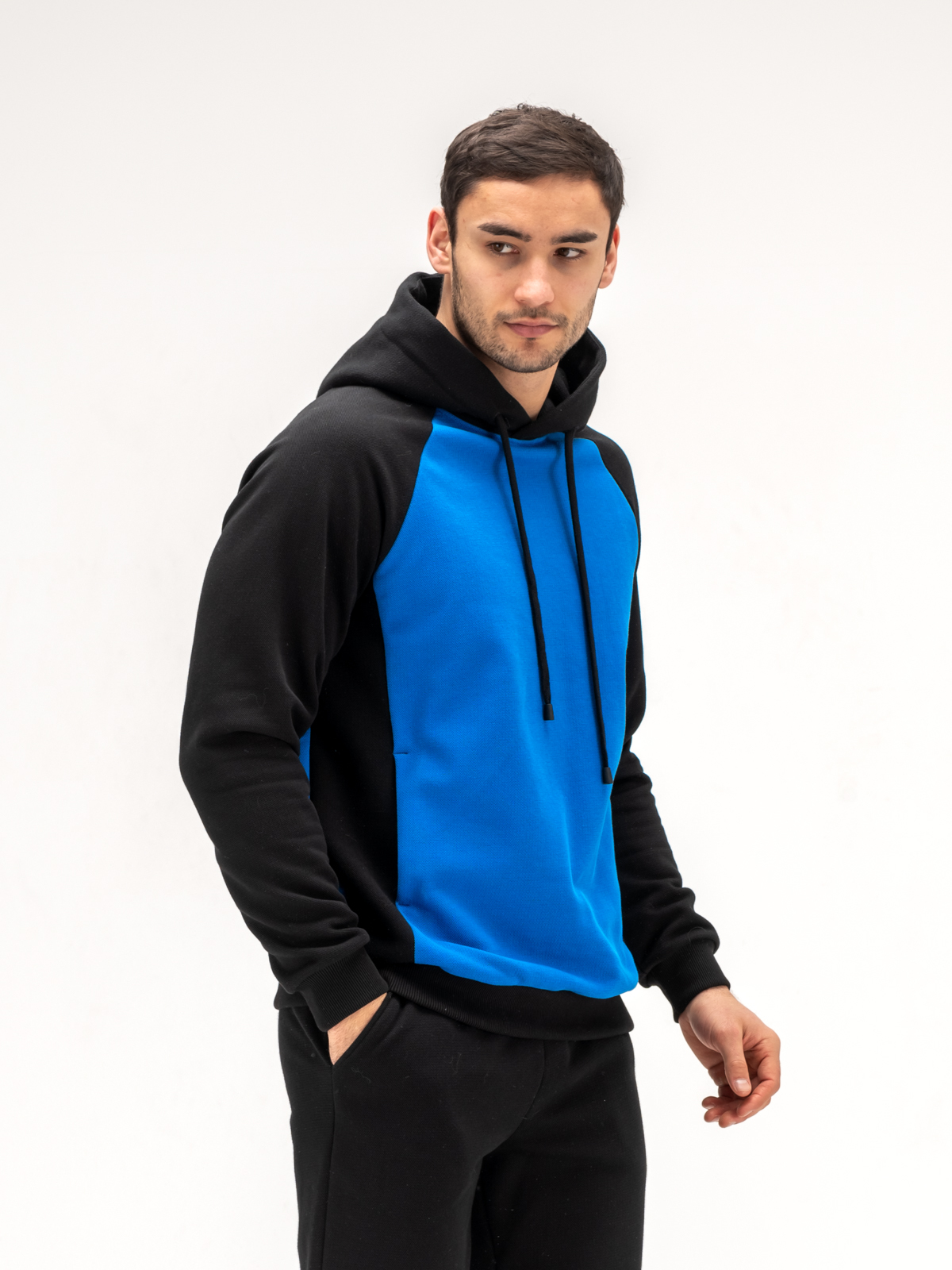 Костюм мужской спортивный с микроначесом – это идеальное сочетание стиля и комфорта для активных мужчин. Визуально привлекает гармония черного и ярко синего цвета, создающая динамичный и современный образ. Худи, выполненное на подкладе, обеспечивает надежную фиксацию карманов, что особенно удобно для хранения мелочей во время тренировок или прогулок..Декатирование ткани придает изделию высокую прочность и устойчивость к деформации, что делает костюм долговечным спутником в любых спортивных начинаниях. Используемый премиальный трикотаж турецкого производства отличается мягкостью и приятными тактильными ощущениями, обеспечивая комфорт даже во время интенсивных физических нагрузок.Этот костюм станет прекрасным выбором как для занятий спортом, так и для повседневной носки. Удобный и модный, он позволит выразить индивидуальность, поддерживая активный образ жизни. Каждый элемент костюма продуман до мелочей, что делает его незаменимым в мужском гардеробе современного человека.