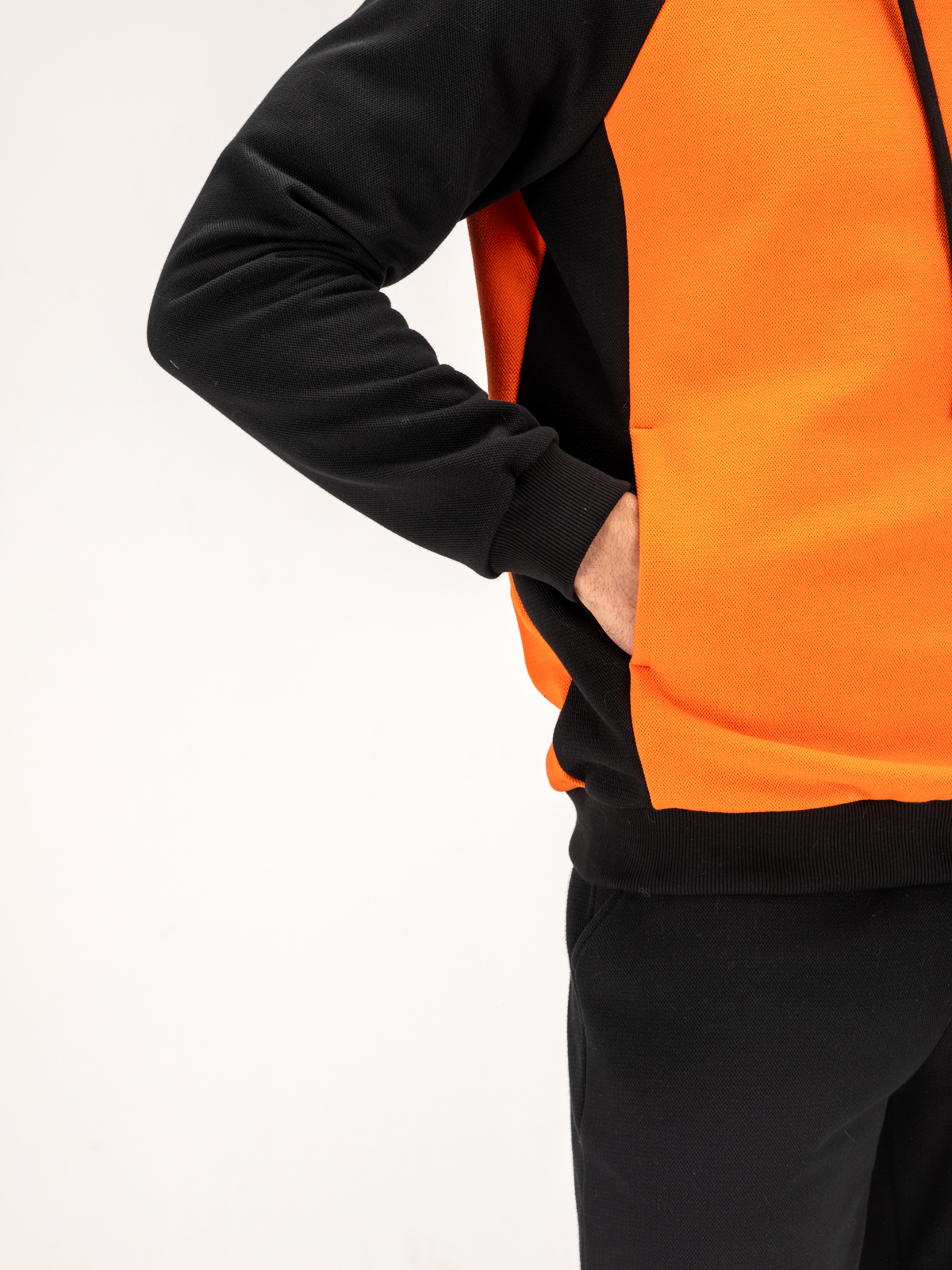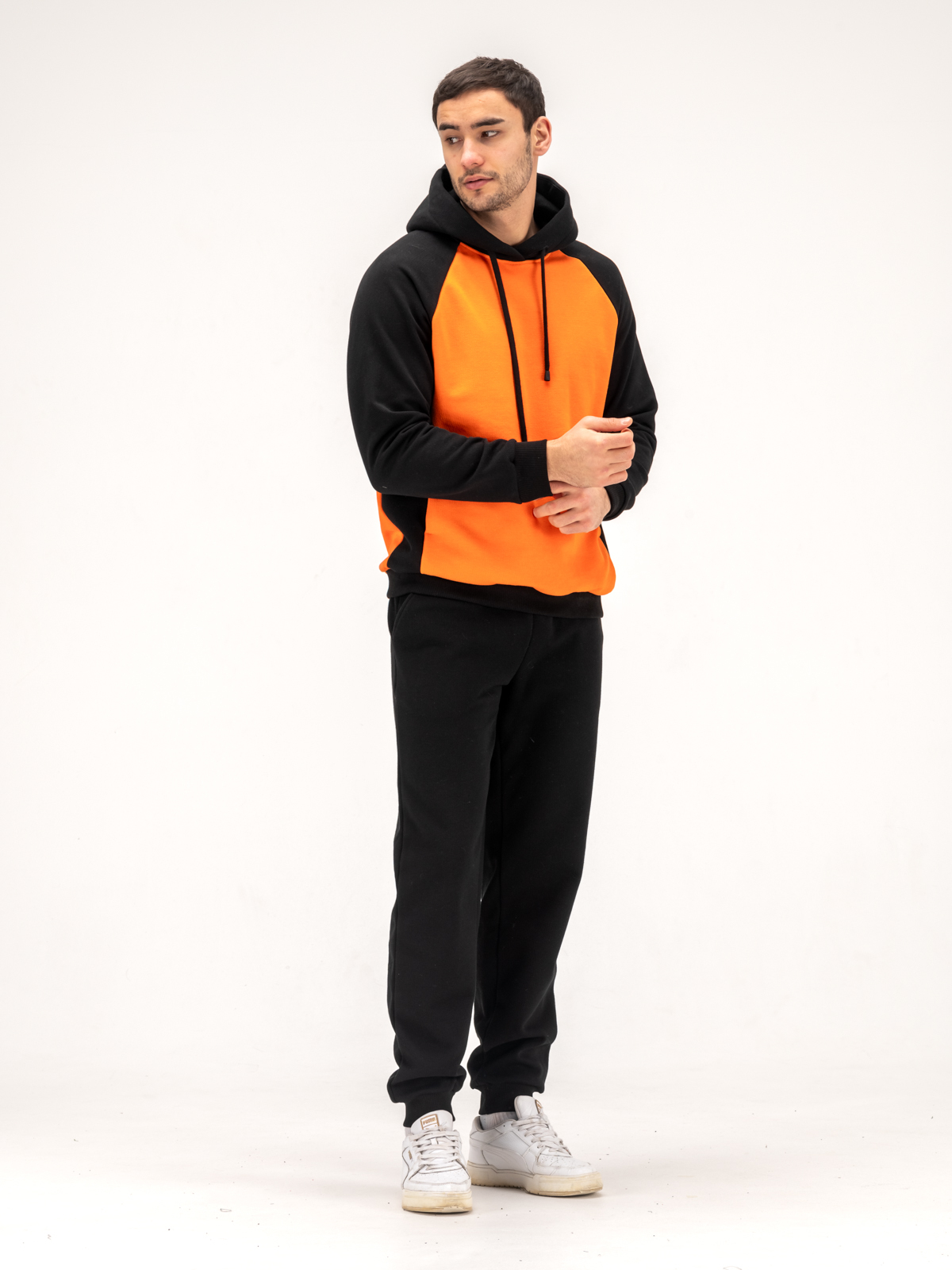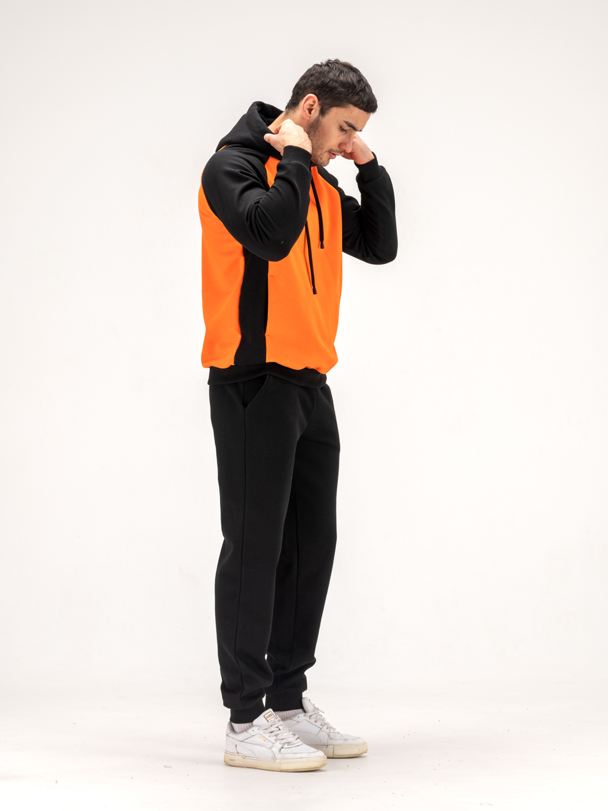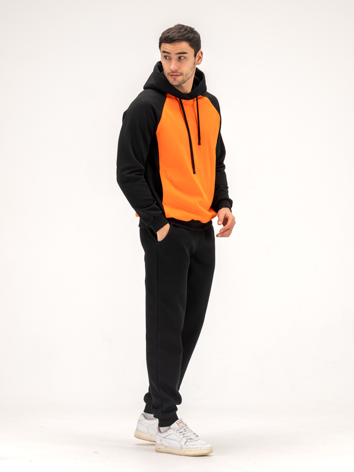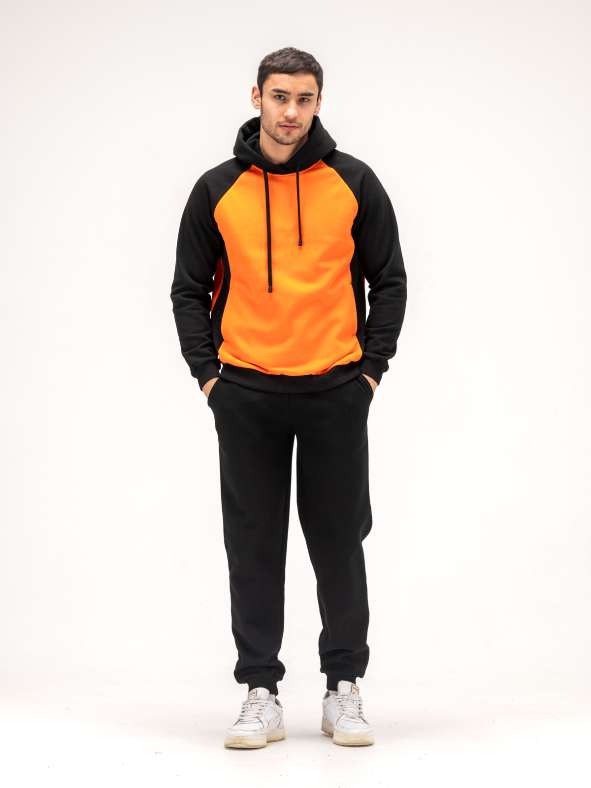 Костюм мужской спортивный с микроначесом – это идеальное сочетание стиля и комфорта для активных мужчин. Визуально привлекает гармония черного и оранжевого цветов, создающая динамичный и современный образ. Худи, выполненное на подкладе, обеспечивает надежную фиксацию карманов, что особенно удобно для хранения мелочей во время тренировок или прогулок.Декатирование ткани придает изделию высокую прочность и устойчивость к деформации, что делает костюм долговечным спутником в любых спортивных начинаниях. Используемый премиальный трикотаж турецкого производства отличается мягкостью и приятными тактильными ощущениями, обеспечивая комфорт даже во время интенсивных физических нагрузок.Этот костюм станет прекрасным выбором как для занятий спортом, так и для повседневной носки. Удобный и модный, он позволит выразить индивидуальность, поддерживая активный образ жизни. Каждый элемент костюма продуман до мелочей, что делает его незаменимым в мужском гардеробе современного человека.