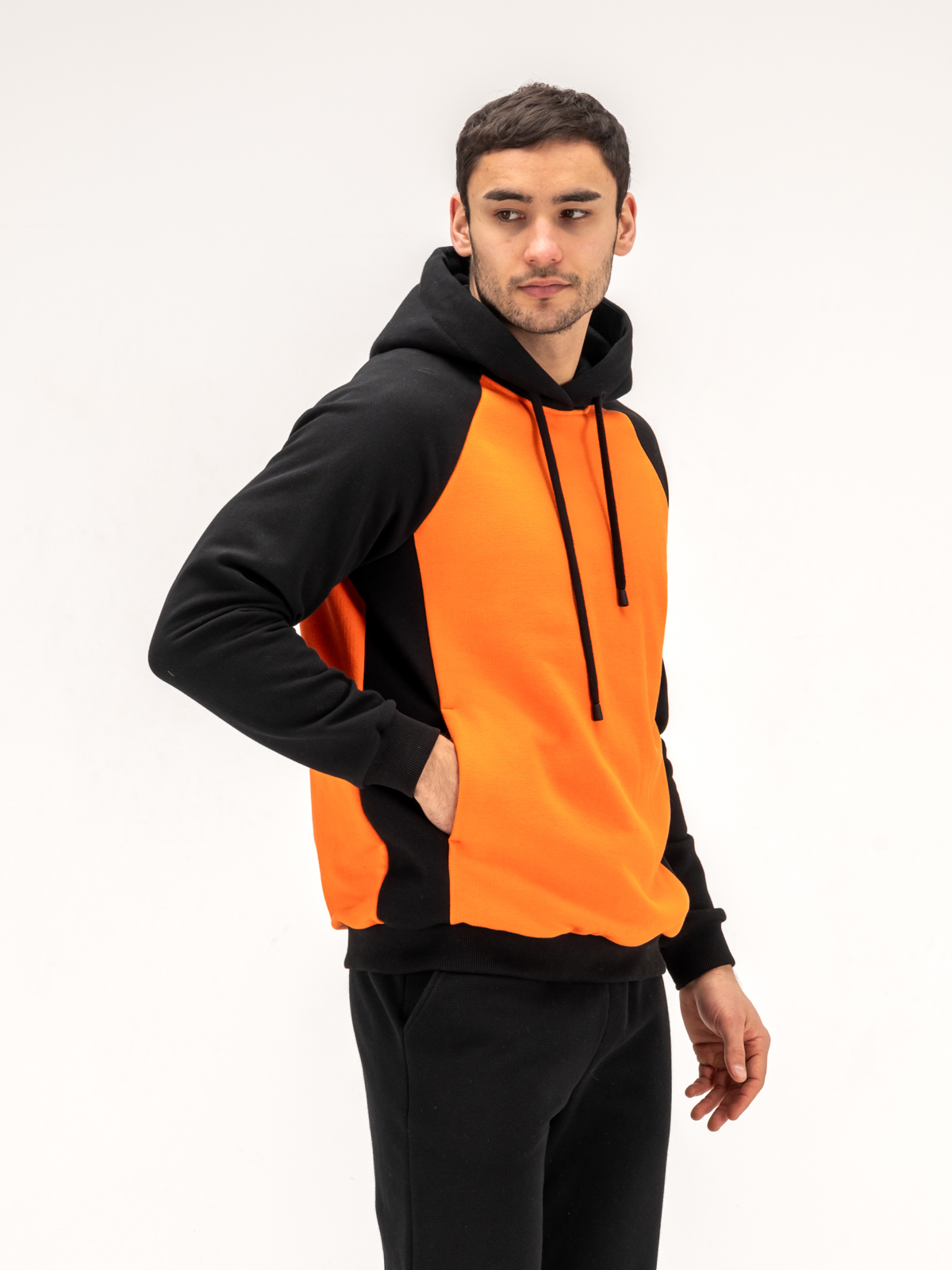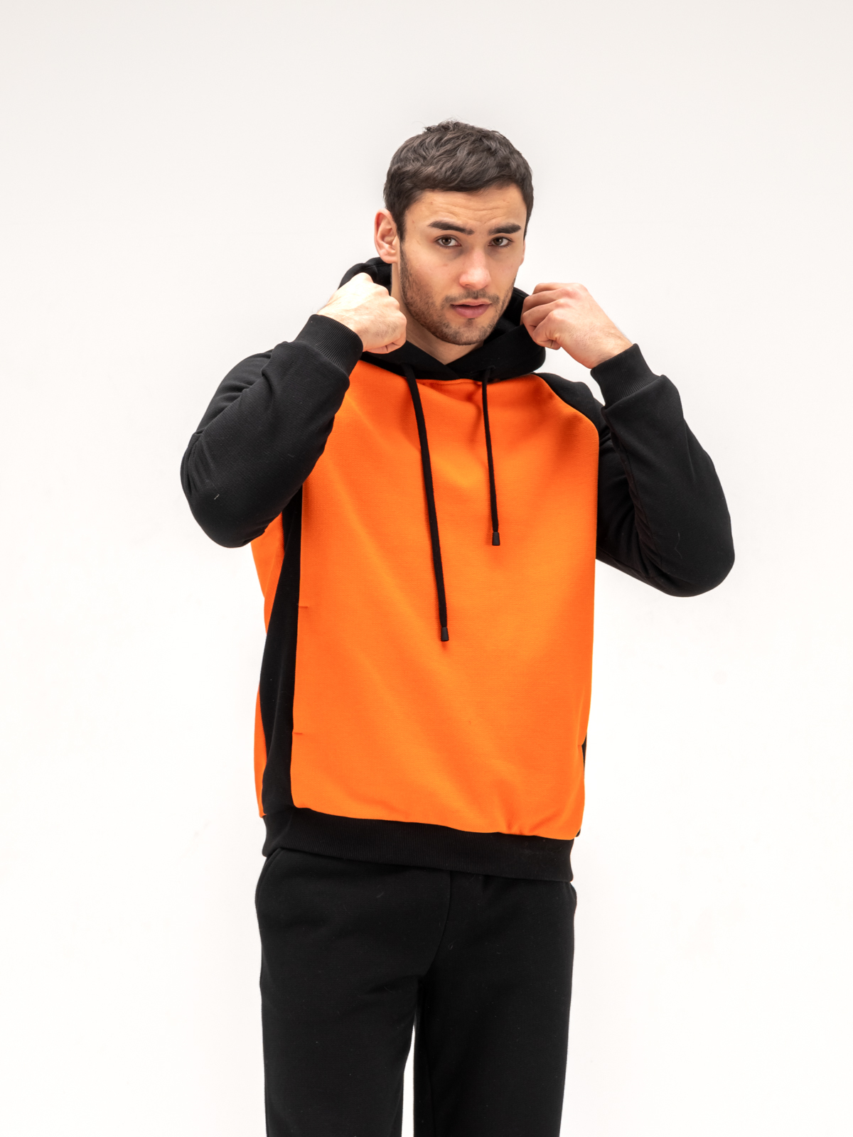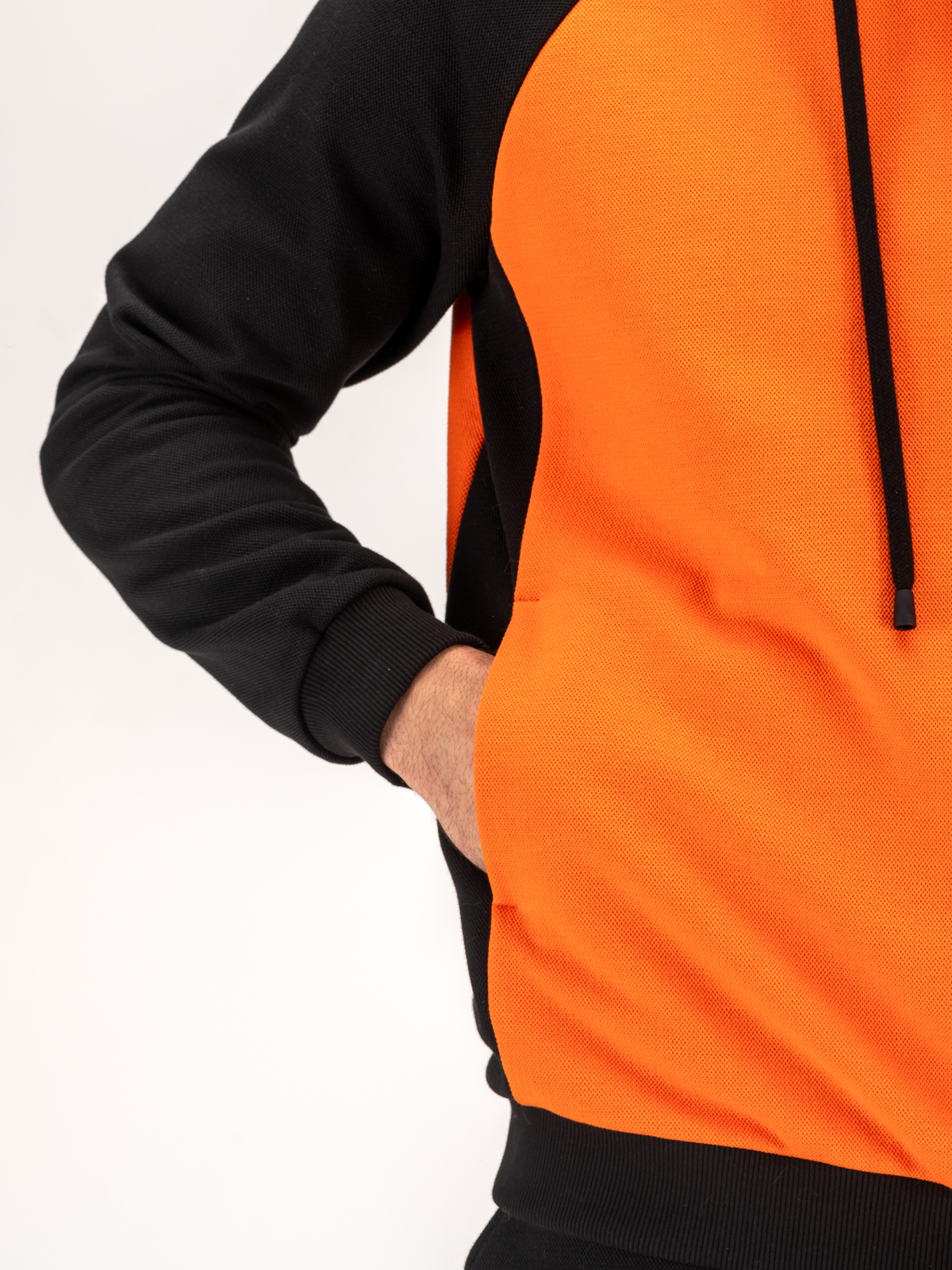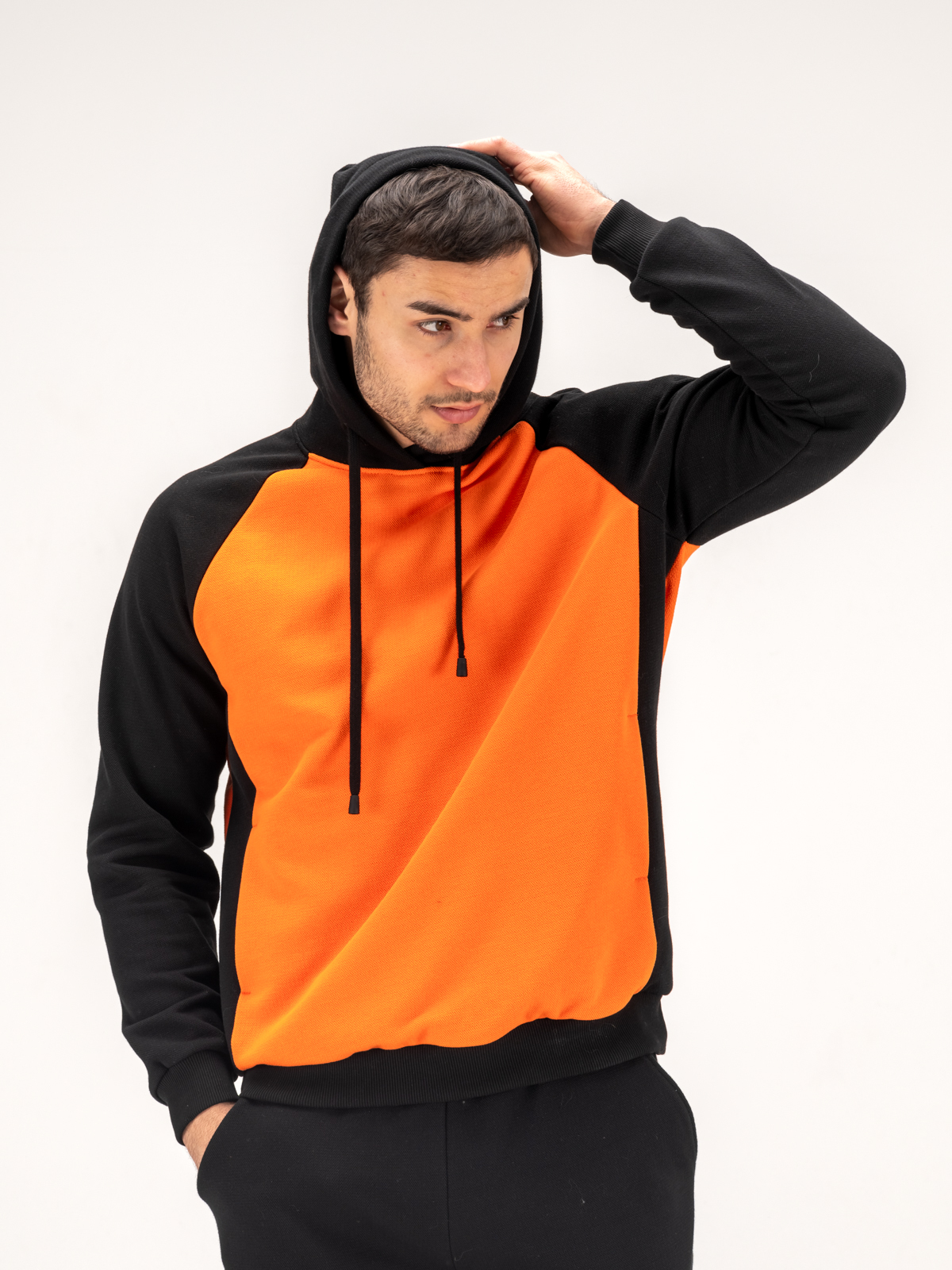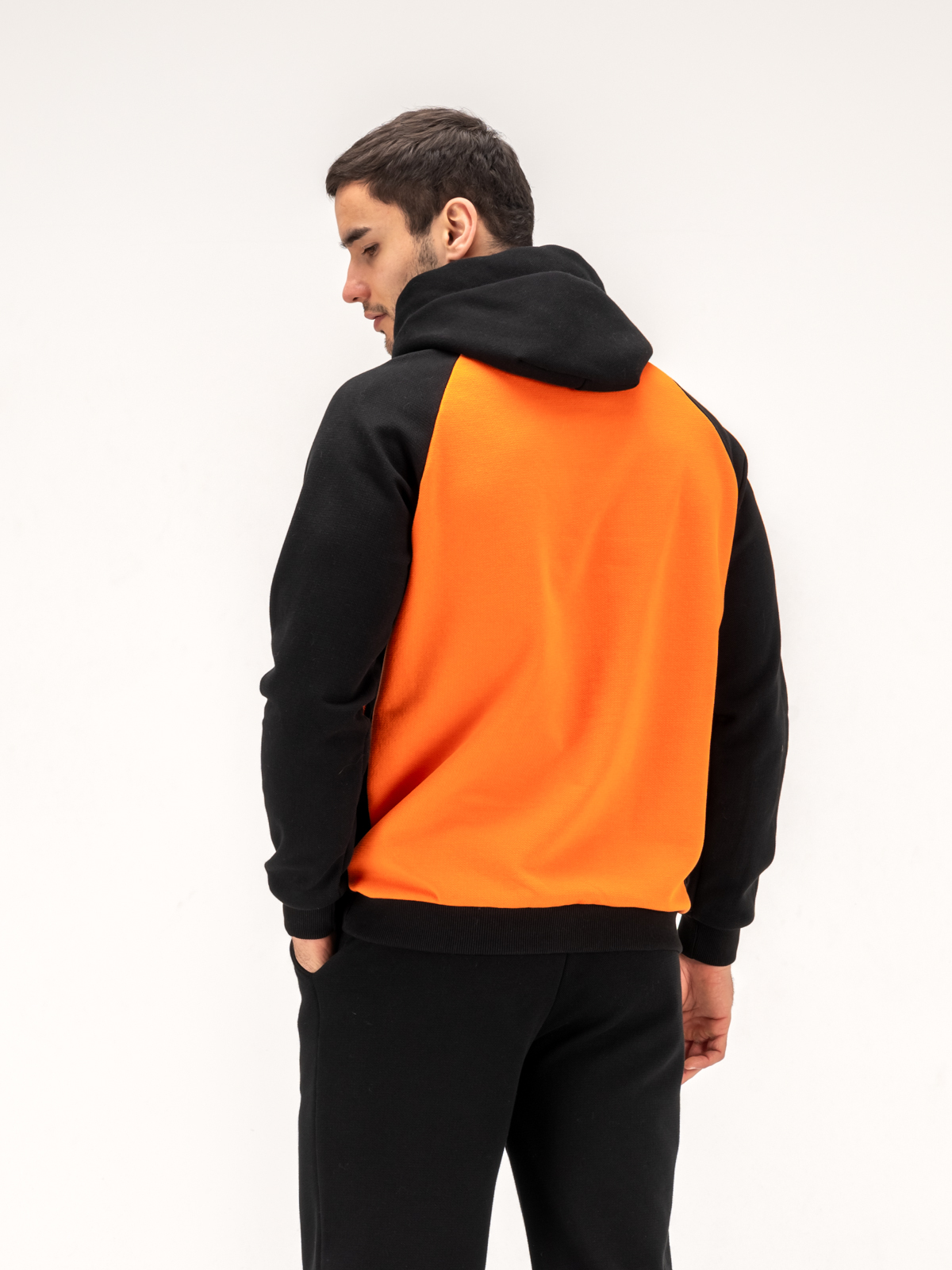 Костюм мужской спортивный с микроначесом – это идеальное сочетание стиля и комфорта для активных мужчин. Визуально привлекает гармония черного и оранжевого цветов, создающая динамичный и современный образ. Худи, выполненное на подкладе, обеспечивает надежную фиксацию карманов, что особенно удобно для хранения мелочей во время тренировок или прогулок.Декатирование ткани придает изделию высокую прочность и устойчивость к деформации, что делает костюм долговечным спутником в любых спортивных начинаниях. Используемый премиальный трикотаж турецкого производства отличается мягкостью и приятными тактильными ощущениями, обеспечивая комфорт даже во время интенсивных физических нагрузок.Этот костюм станет прекрасным выбором как для занятий спортом, так и для повседневной носки. Удобный и модный, он позволит выразить индивидуальность, поддерживая активный образ жизни. Каждый элемент костюма продуман до мелочей, что делает его незаменимым в мужском гардеробе современного человека.