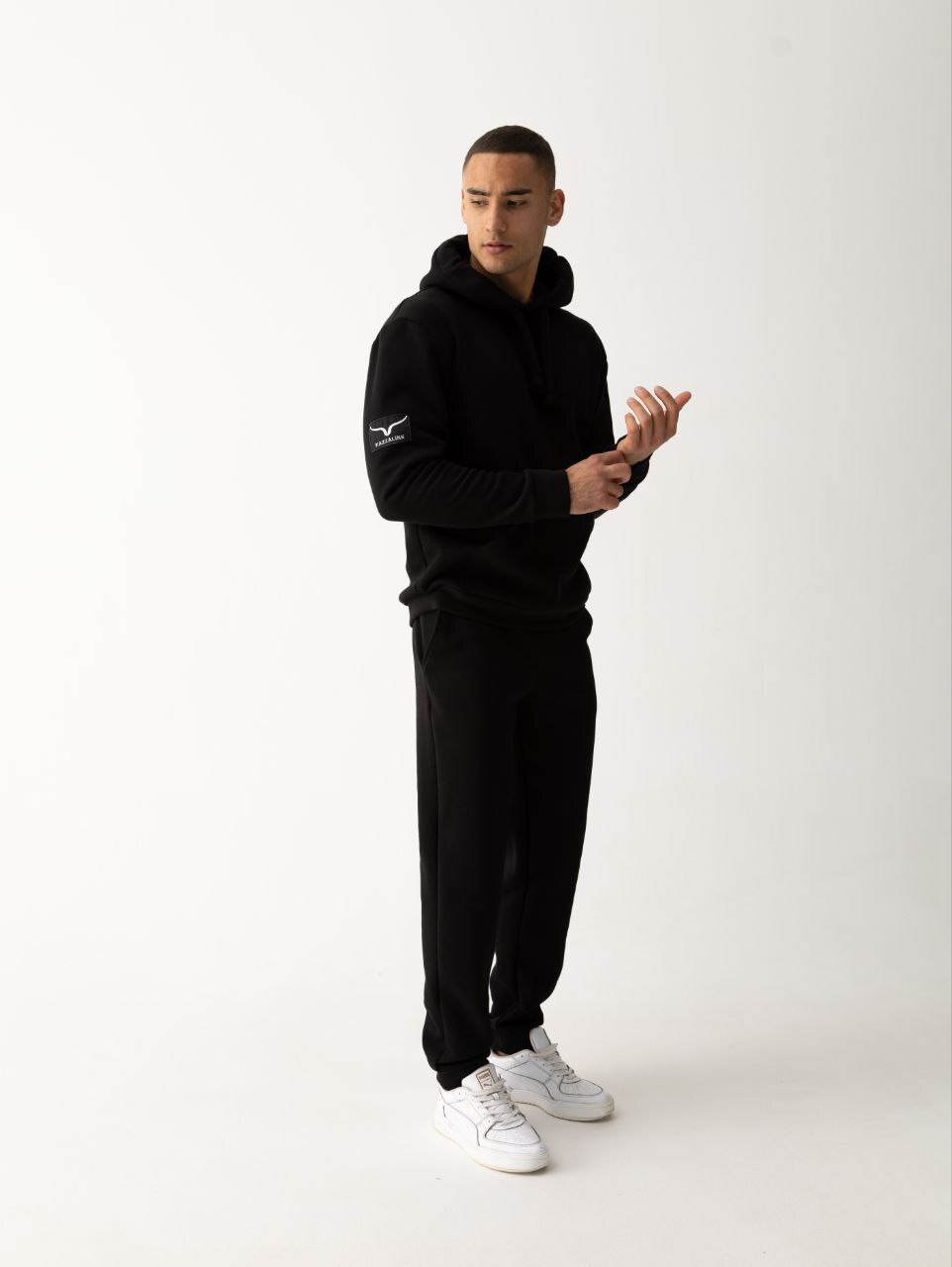 Мужской спортивный костюм с начесом — это воплощение уюта и стиля. Изготовленный из премиального турецкого трикотажа, он сочетает в себе тепло и комфорт, идеально подходя для прохладных дней. Двойной капюшон с шнурками ручной работы добавляет изысканности и функциональности, позволяя регулировать посадку по вашему вкусу. Брюки с посадкой на бедрах обеспечивают свободу движений, а манжеты на штанинах подчеркивают спортивный силуэт. Особое внимание уделено деталям: ткань прошла декатирование перед раскроем, что гарантирует сохранение формы и цвета даже после многочисленных стирок. Этот костюм — не просто одежда, а стильное решение для тех, кто ценит качество и комфорт в каждой детали.